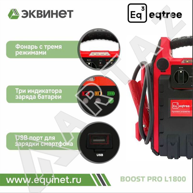 Автономное пусковое устройство 12В 1800А AGM с LED фонариком и Power Bank для автомобилей и мотоциклов eqtree™ BP-L1800