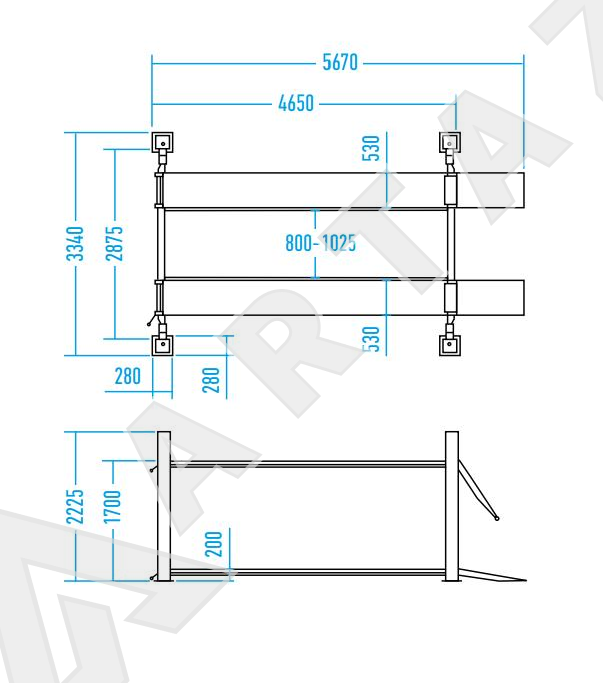 MAX Расстояние между платформами/трапами в четырёхстоечных, мм:1025