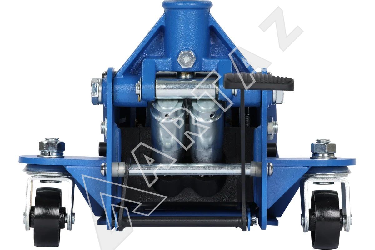 Благодаря низкопрофильной конструкции с минимальной высотой подхвата 75 мм этот домкрат подходит для использования с автомобилями, имеющими ограниченное пространство под днищем. Устройство оснащено двухплунжерным насосом и механическим стопором с педальным управлением, что делает подъём быстрым, точным и надёжным. Надёжность конструкции и удобство эксплуатации делают его незаменимым инструментом для профессиональных мастерских, шиномонтажных сервисов и автолюбителей, которым важна безопасность и эффективность работы с автомобилем.