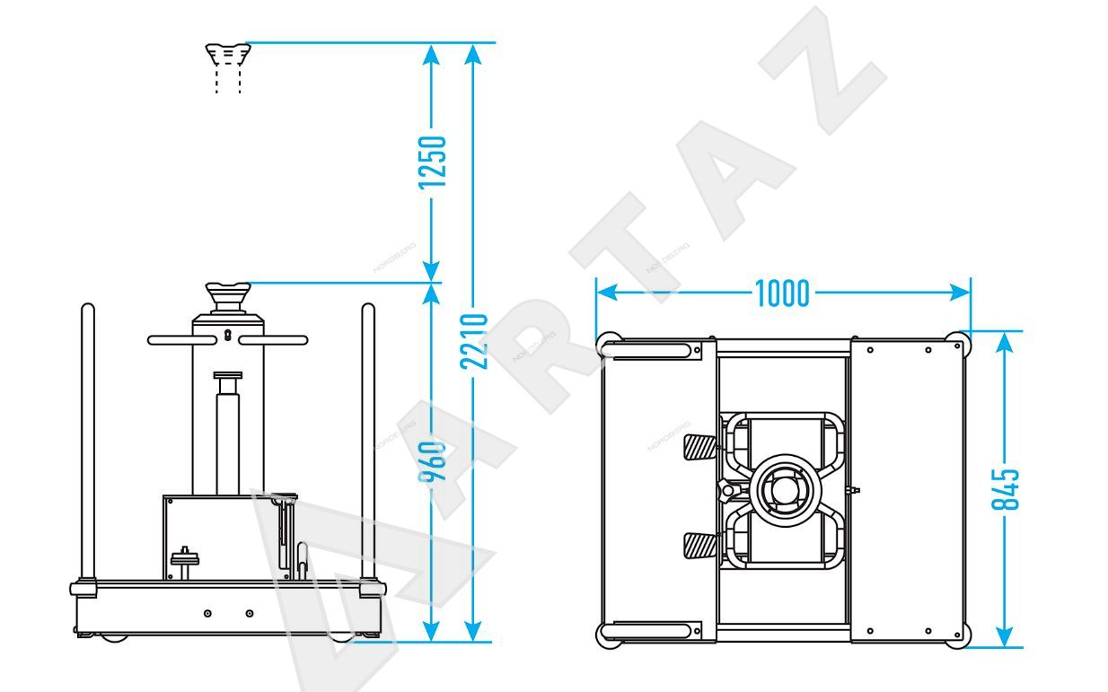 - Максимальное расстояние между точками подхвата: 1000 мм