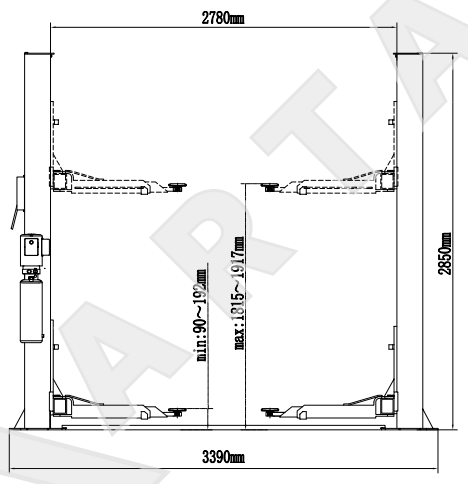 Электрогидравлический двухстоечный подъемник A240XM (CЕРЫЙ) бренда Atis применяется на станциях технического обслуживания, мастерских, частных гаражах для подъема легковых и внедорожных транспортных средств массой до 4 тонн на высоту до 1922 мм, высота подхвата - 89 мм. Время подъема составляет 37 секунд. Расстояние между стойками подъемника составляет 2780 миллиметров. Для предотвращения произвольного опускания автомобиля подъемник оснащен надежной системой механической блокировки. Благодаря конструкции с нижней синхронизацией снимается ограничение на высоту обслуживаемых транспортных средств и высоту помещения, в котором монтируется подъемник. Тросы располагаются внизу и закрыты специальным трапом что исключает их повреждение автомобилем.