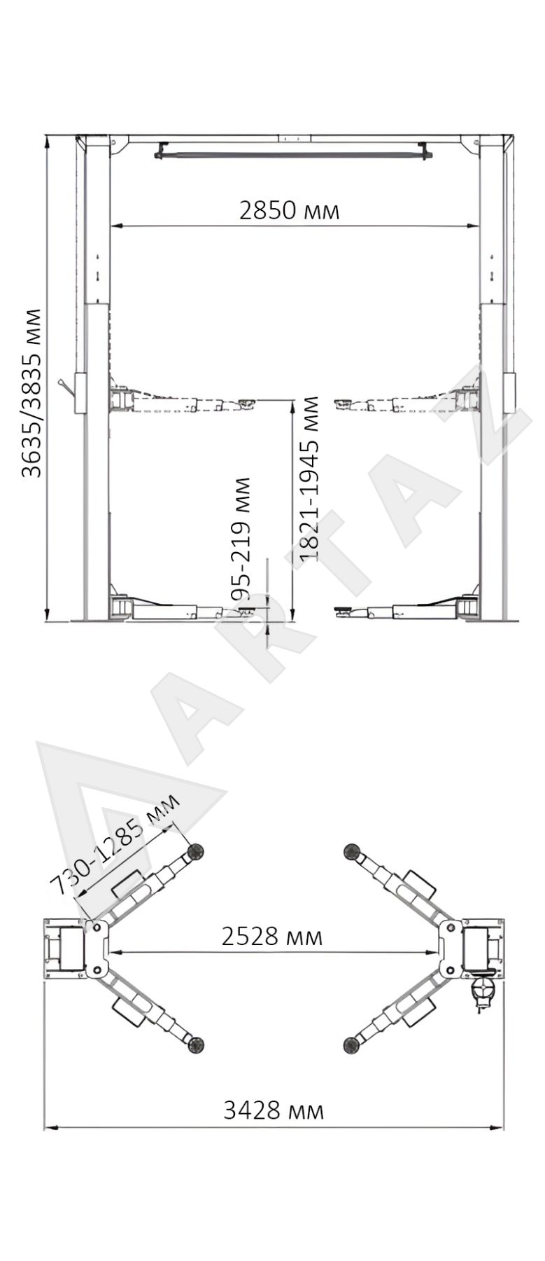 Общая высота подъемника, мм:3635 , 3835