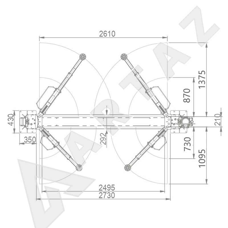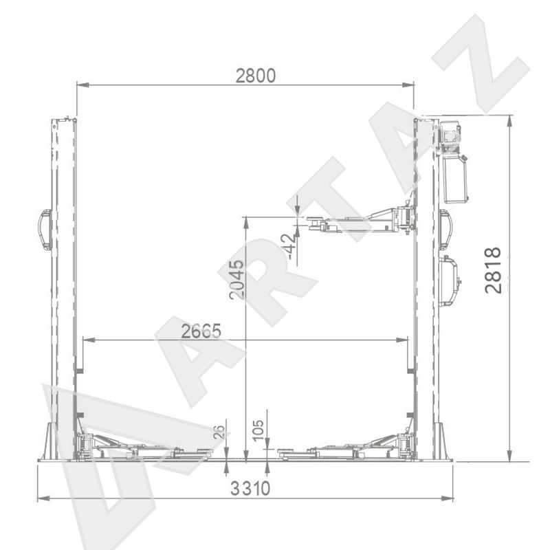 Двухстоечный подъемник BRIGHT ALPHA 40_RAL7040/7016 4т, электрогидравлический, 380В, с нижней синхронизацией, 105-1988 мм