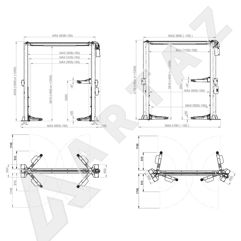Подъемник устанавливается на подготовленную бетонную поверхность, крепление осуществляется через анкеры. Управления стопорами - пультом. Автоподъемник идеально подойдет для слесарных работ.