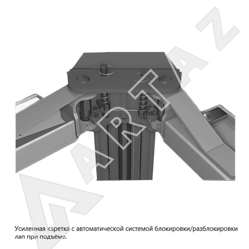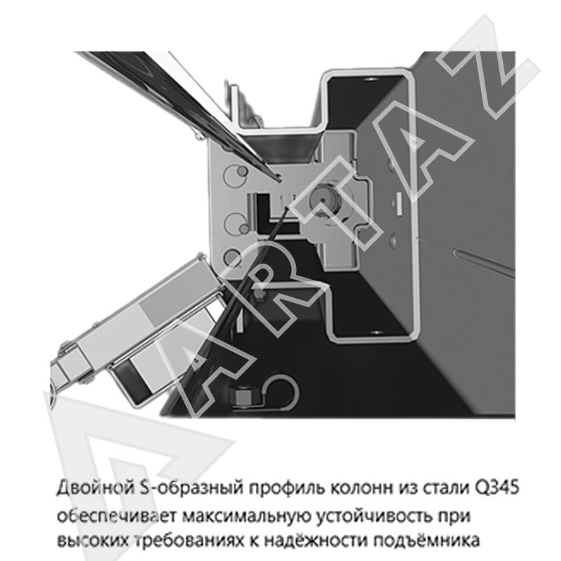 Подъемник устанавливается на подготовленную бетонную поверхность, крепление осуществляется через анкеры. Управления стопорами - пультом. Автоподъемник идеально подойдет для слесарных работ.
