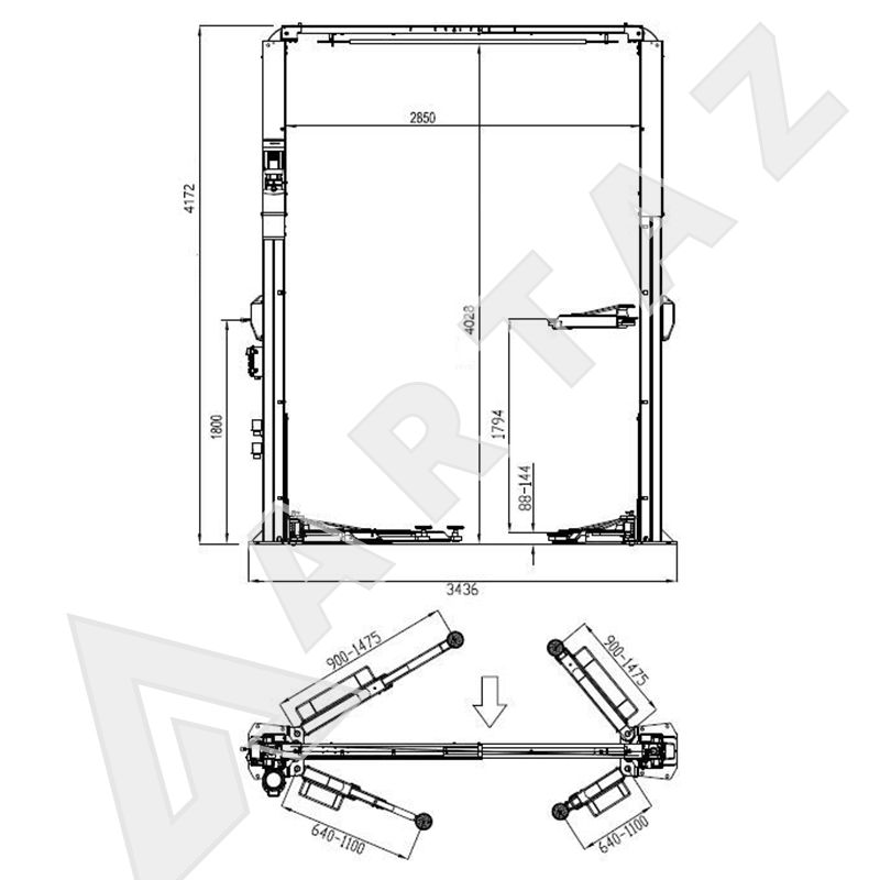 Двухстоечный подъемник eqtree™ TL 2046Е 4.6т, электрогидравлический, 380В, с верхней синхронизацией, 88-1794 мм