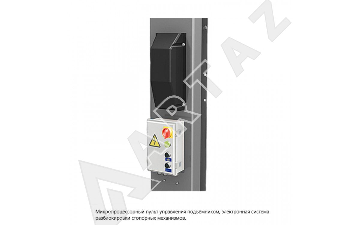 Подъемник устанавливается на подготовленную бетонную поверхность, крепление осуществляется через анкеры. Управления стопорами - пультом. Автоподъемник идеально подойдет для слесарных работ.