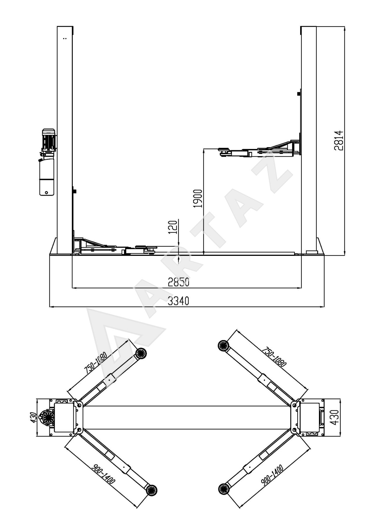 Подъемник устанавливается на подготовленную бетонную поверхность, крепление осуществляется через анкеры. Управления стопорами - на 2-х колоннах. Автоподъемник идеально подойдет для слесарных работ.