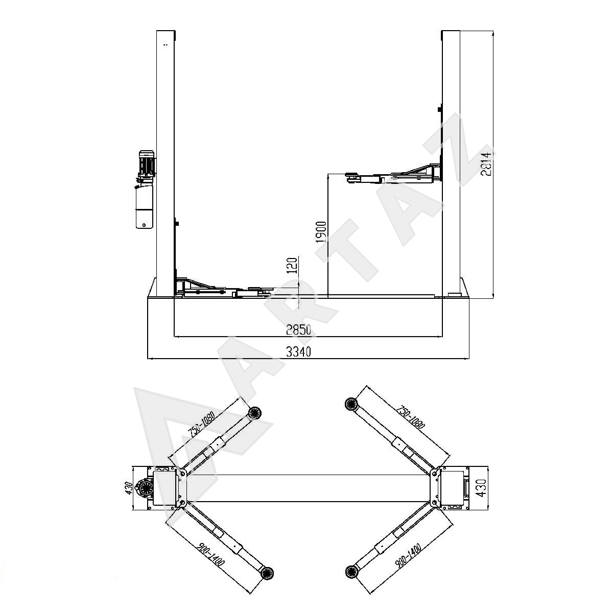 Подъемник устанавливается на подготовленную бетонную поверхность, крепление осуществляется через анкеры. Управления стопорами - на 2-х колоннах. Автоподъемник идеально подойдет для слесарных работ.