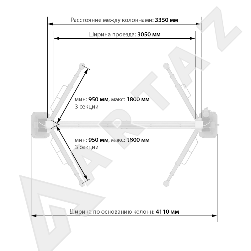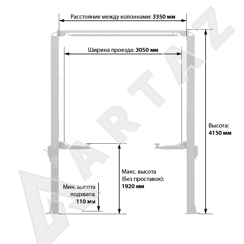 Двухстоечный подъемник Launch GL01929 5т, электрогидравлический, 380В, с верхней синхронизацией, 110-1920 мм
