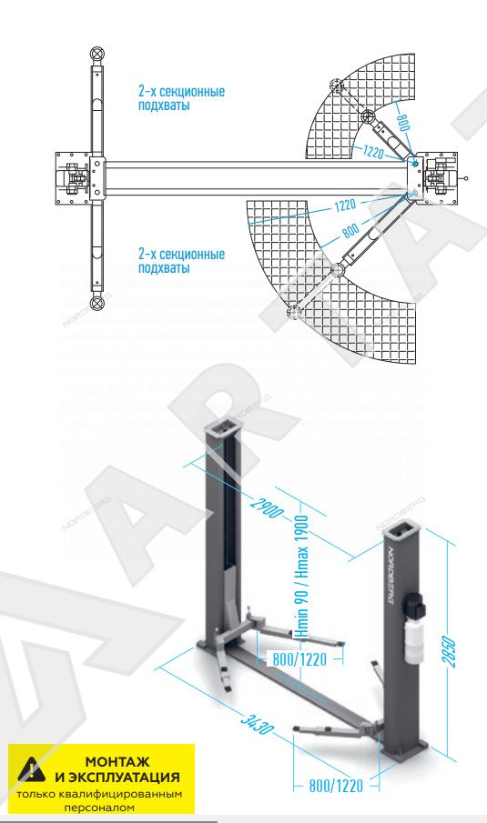 Двухстоечный подъемник Nordberg N4120BE-4B_380 4т, электрогидравлический, 380В, с нижней синхронизацией, 90-1900 мм