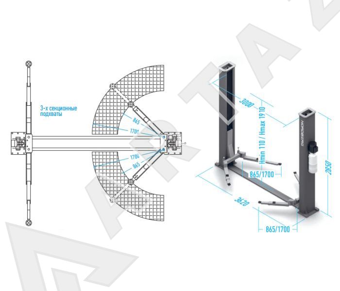 Двухстоечный подъемник Nordberg N4122AE-5G_380 5т, электрогидравлический, 380В, с нижней синхронизацией, 110-1910 мм