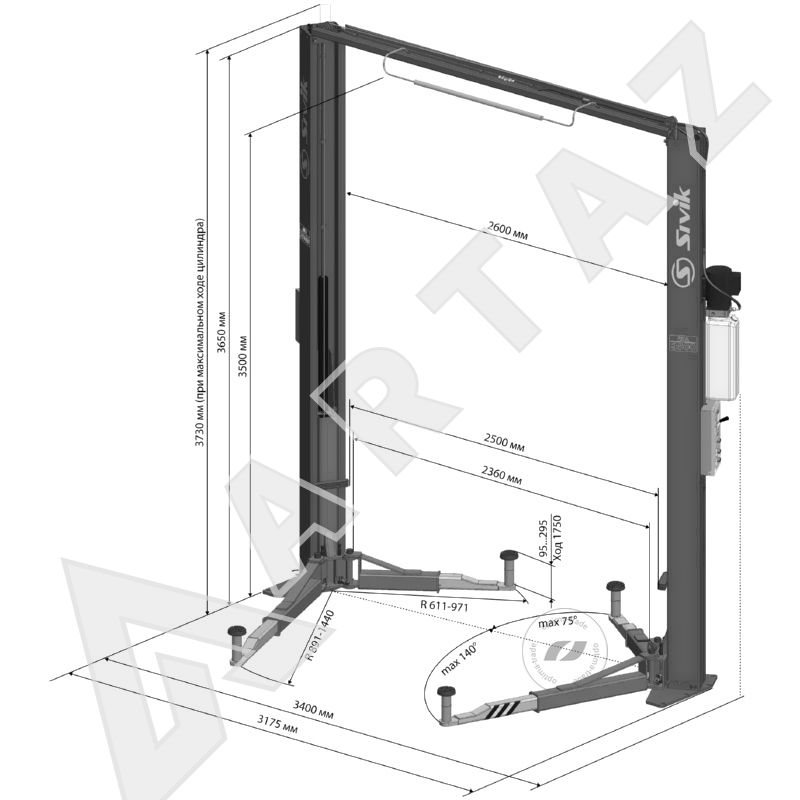 Двухстоечный подъемник Sivik ПГА-3500-Е серый 3.5т, электрогидравлический, 380В, с верхней синхронизацией, 95-2045 мм