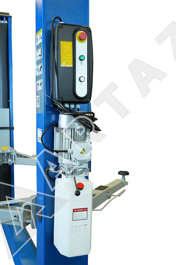 Подъемник устанавливается на подготовленную бетонную поверхность, крепление осуществляется через анкеры. Управления стопорами - на 1-ой колонне. Автоподъемник идеально подойдет для слесарных работ.