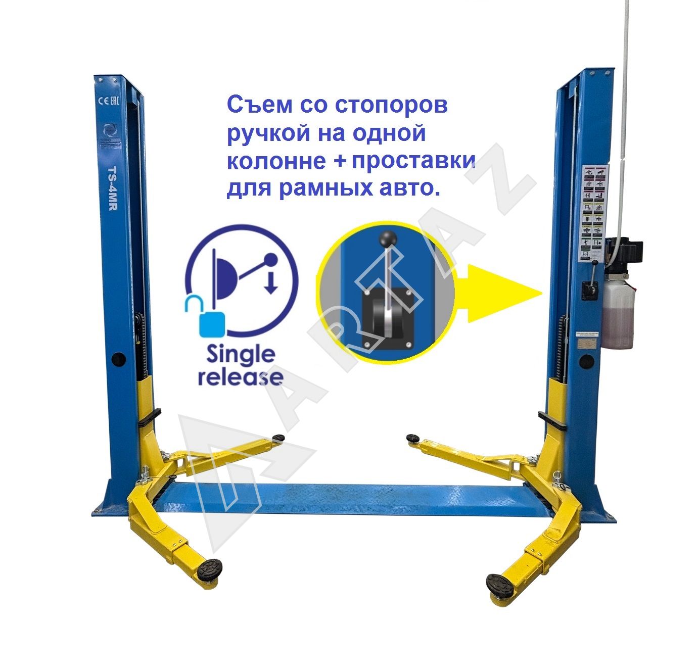 Техносоюз TS-4MR двухстоечный подъемник с нижней синхронизацией грузоподъемностью до 4 тонн для слесарных работ