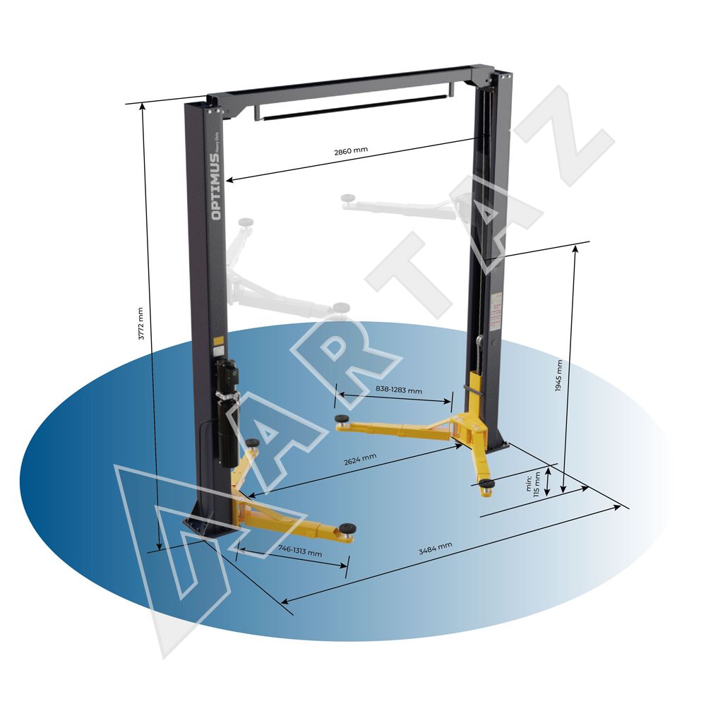 Двухстоечный подъемник Wiederkraft OPT-5W (220V) 4т, электрогидравлический, 380В, с верхней синхронизацией, 115-3772 мм
