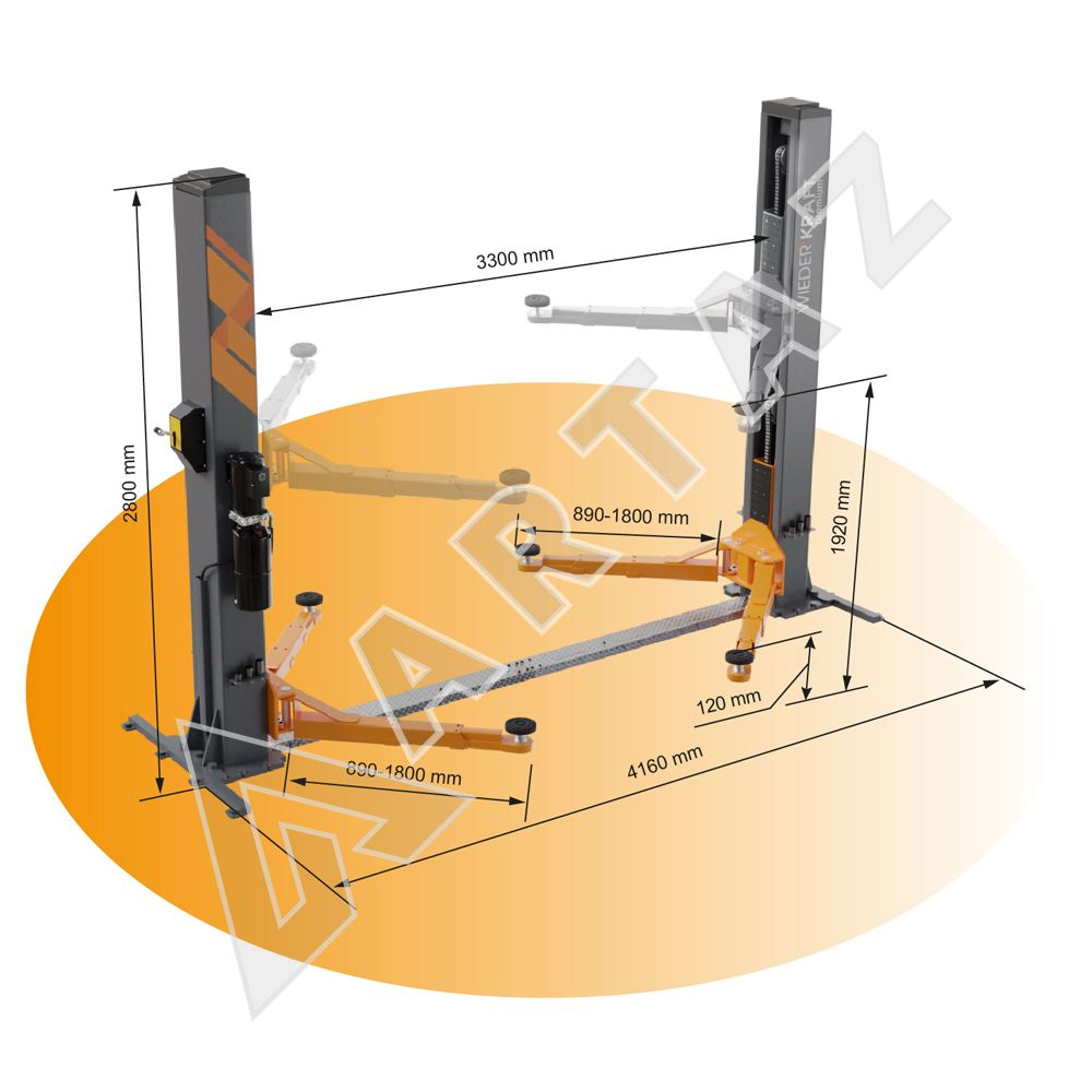 Двухстоечный подъемник Wiederkraft WDK-524N 5т, электрогидравлический, 380В, с нижней синхронизацией, 120-1920 мм