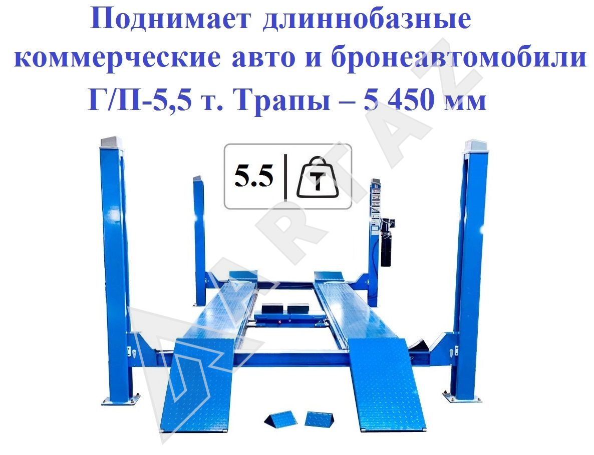 EQFS ES5.5D-4L четырехстоечный автоподъемник грузоподъемностью до 5.5 тонн для развала схождения с траверсой