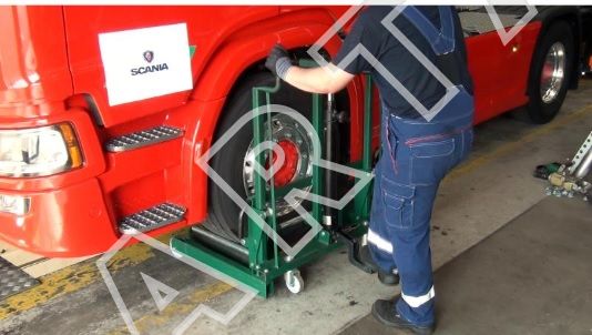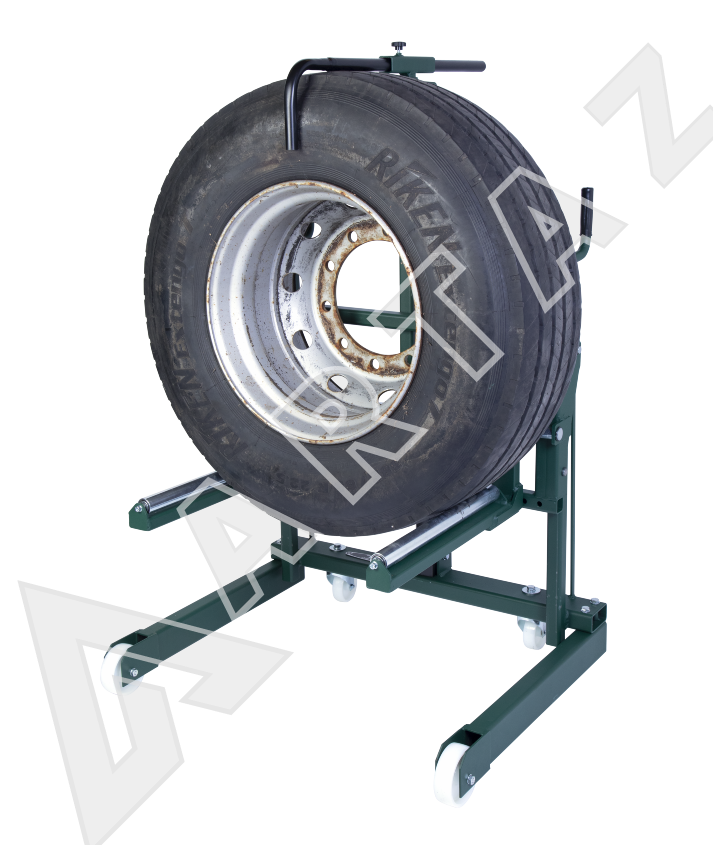 Профессиональная тележка для транспортировки, снятия и установки колес грузовых автомобилей и автобусов. Предназначена для использования в СТО и мастерских по ремонту грузовой техники как специализированный инструмент, обеспечивающий безопасность и скорость работ.