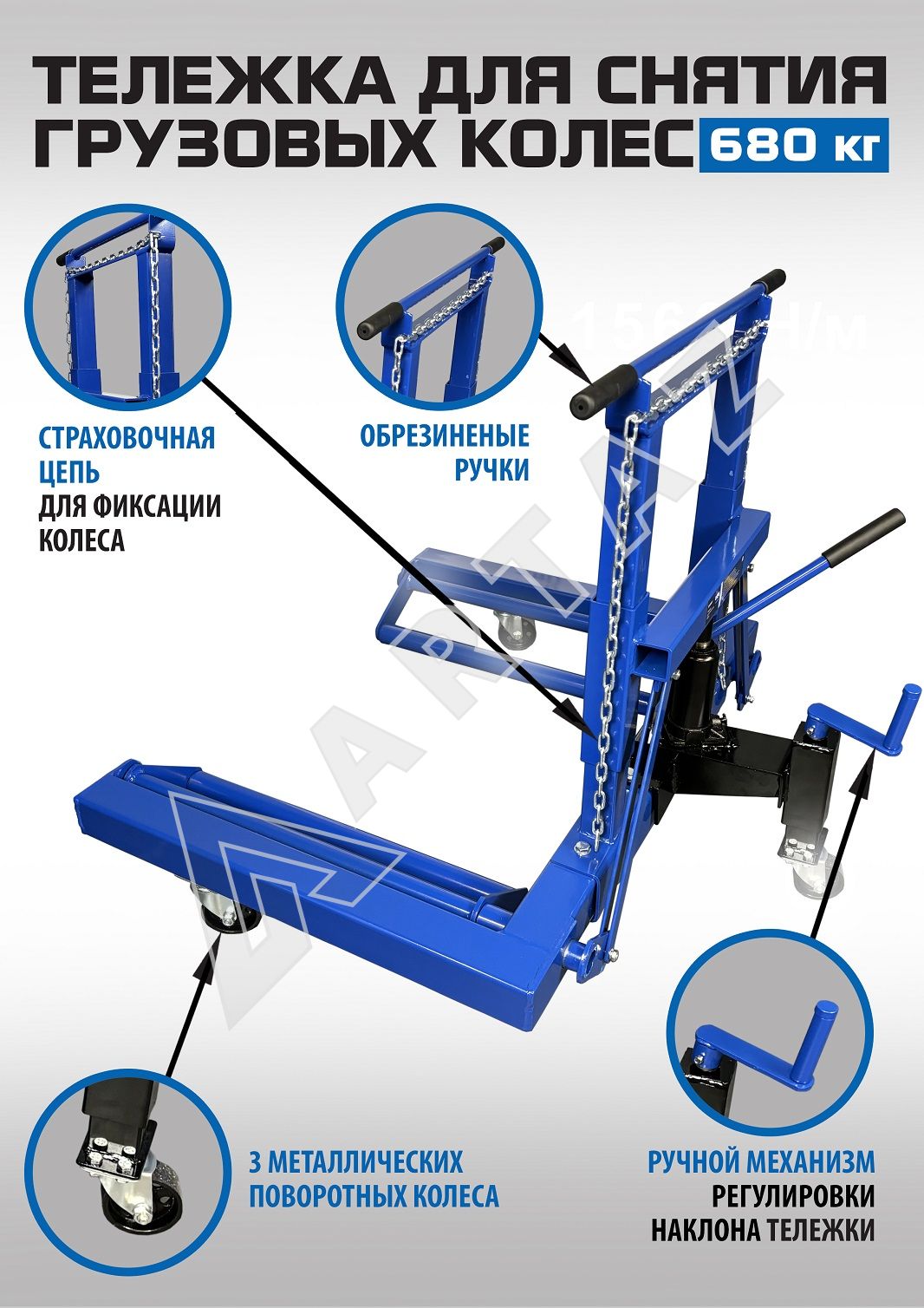 Гидравлическая тележка для снятия и установки колёс 680 кг, Техносоюз ES-0907