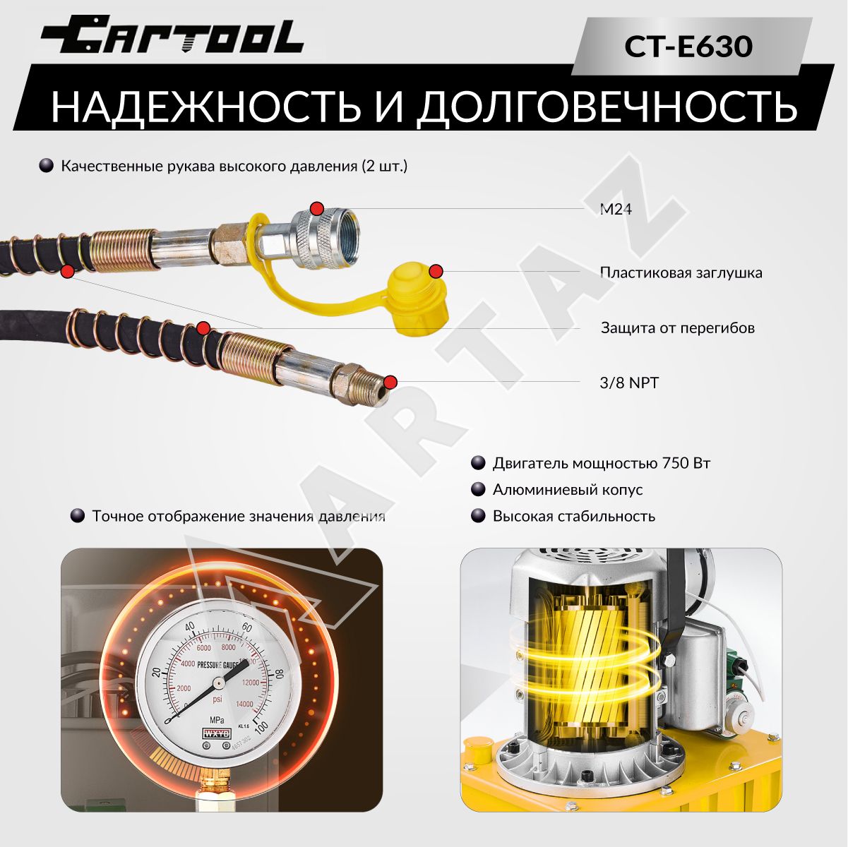 Основные преимущества электро-гидравлического насоса Car-Tool CT-E630