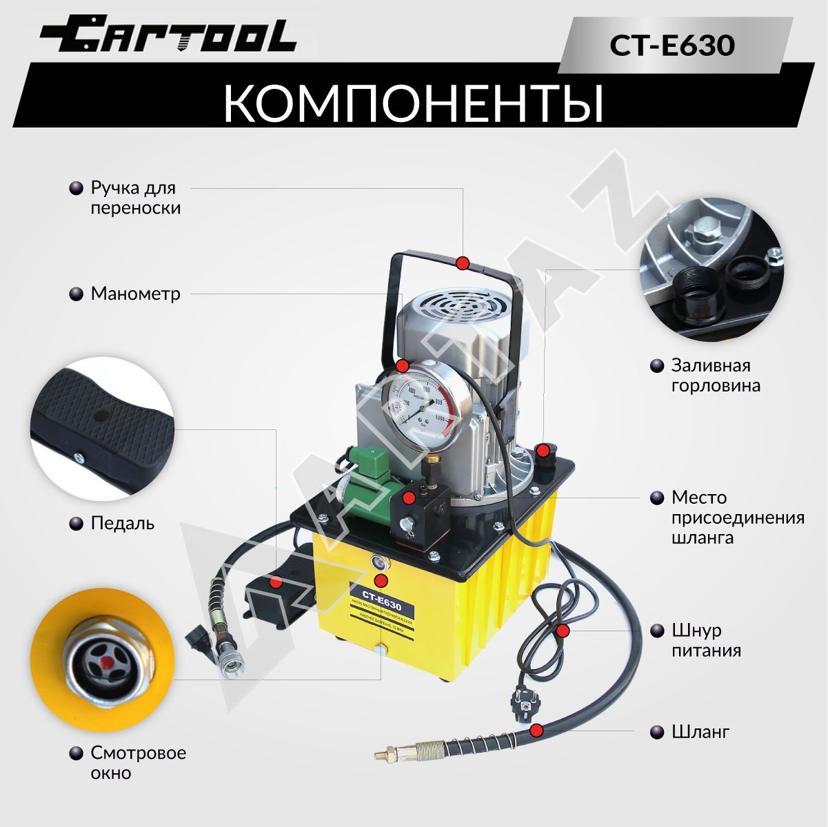 - Гидравлический насос Car-Tool CT-E630 с электроприводом
