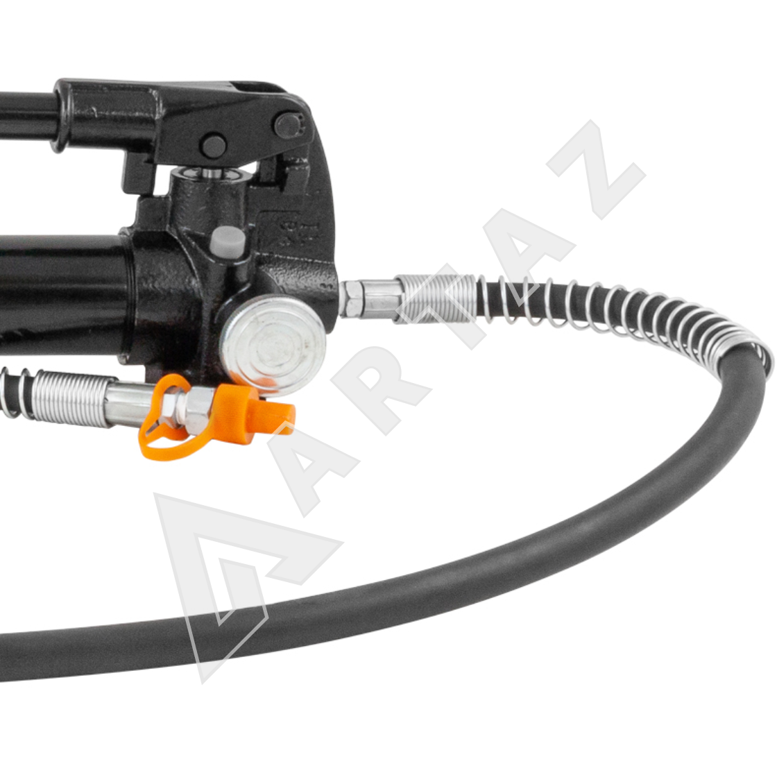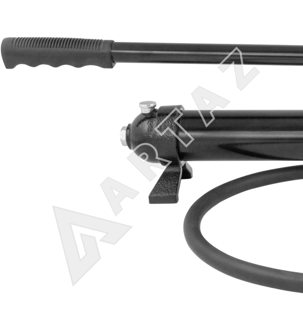- Гидравлический насос с ручным приводом, корпус из стали, максимальное давление 700 бар, объём масла 0,6 л.
