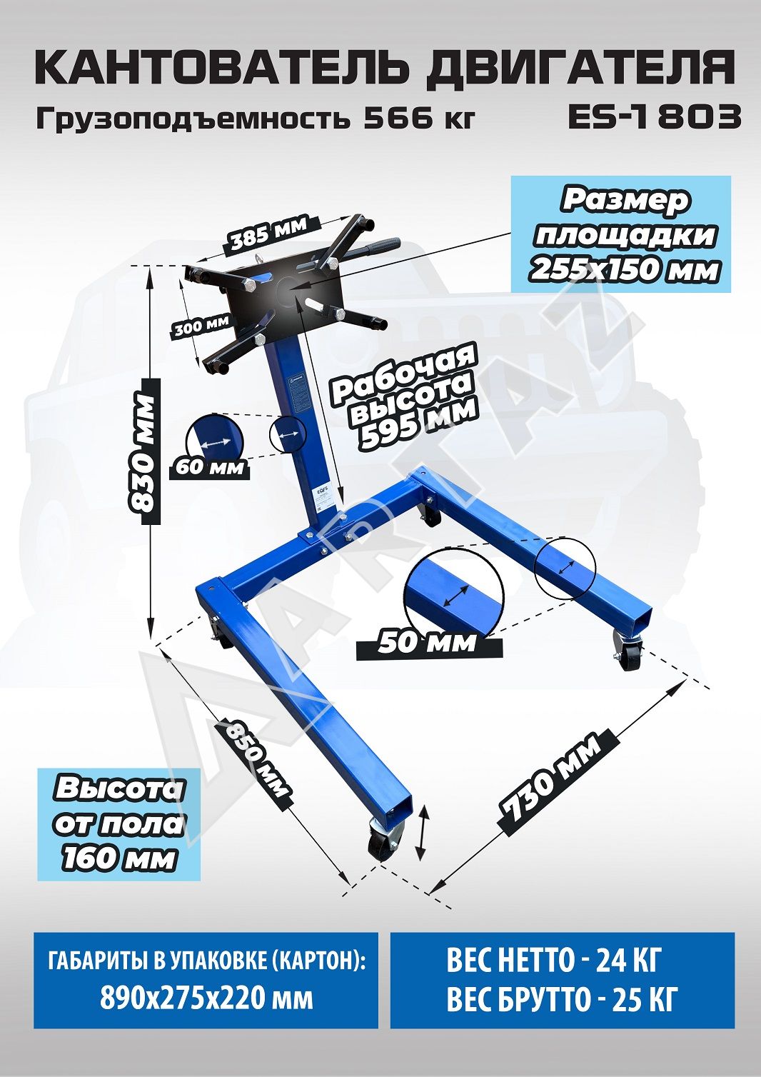 ES-1803 кантователь двигателя 566 кг с П-образным основанием и регулируемыми кронштейнами