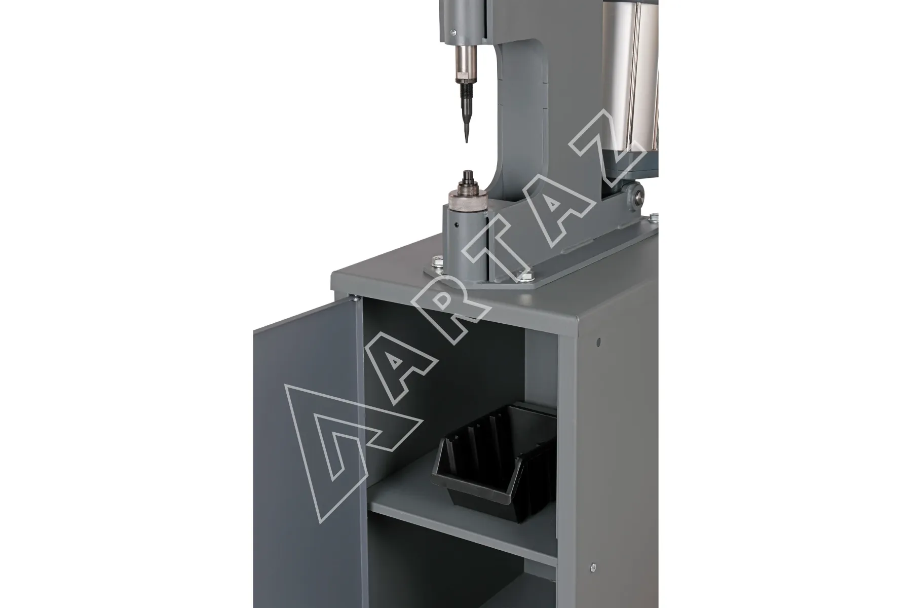 - Компактная и прочная тумба с лотком для использованных заклепок повышает эргономику рабочего места
