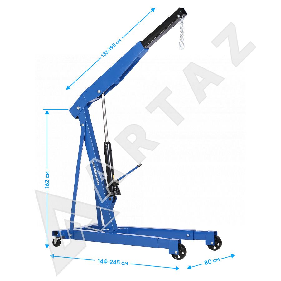 N3731 Подкатной гидравлический кран 3 т с высотой подъема до 2140 мм – надежный и удобный помощник в автосервисе
