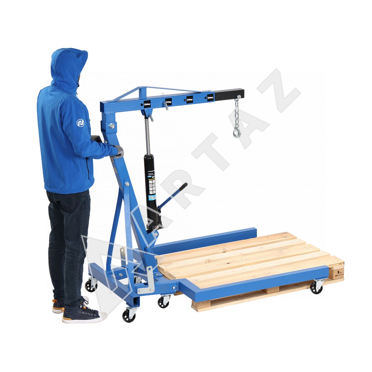 N3707 Надёжный гаражный кран подкатной с гидравлическим подъёмом до 680 кг и высотой до 1980 мм