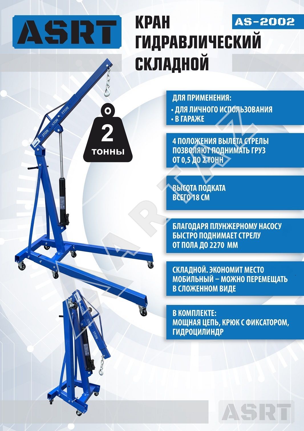 AS-2002 кран гаражный 2 т, складной, с низким клиренсом 180 мм и высотой подъема 2270 мм