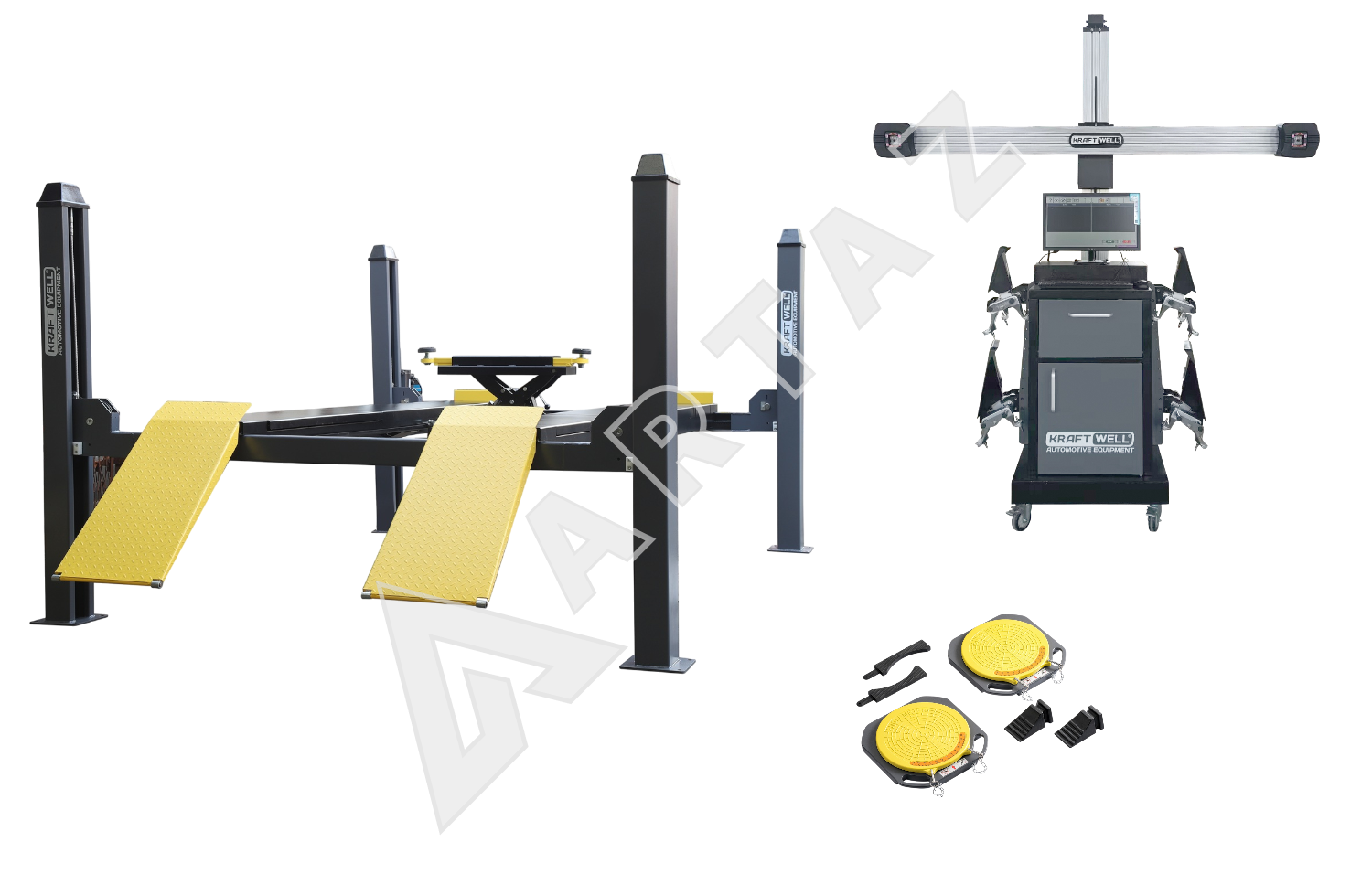 Стенд для сход-развала колес KraftWell 4WA_set_3 включает в себя: