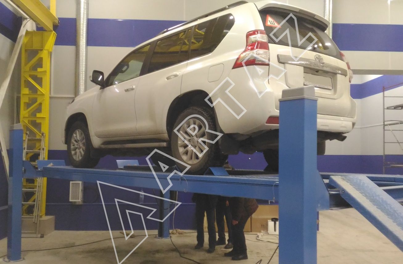 - Стенд с гидравлическими подъемниками для подъема легкового и грузового транспорта с колесами до 24 дюймов