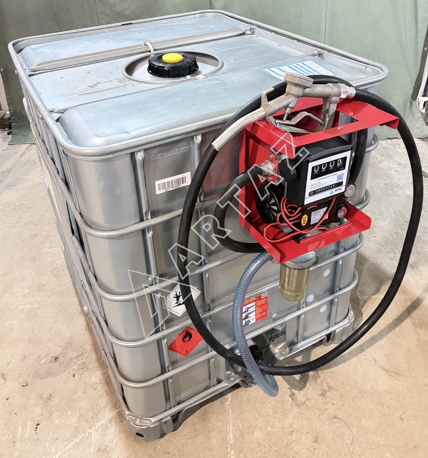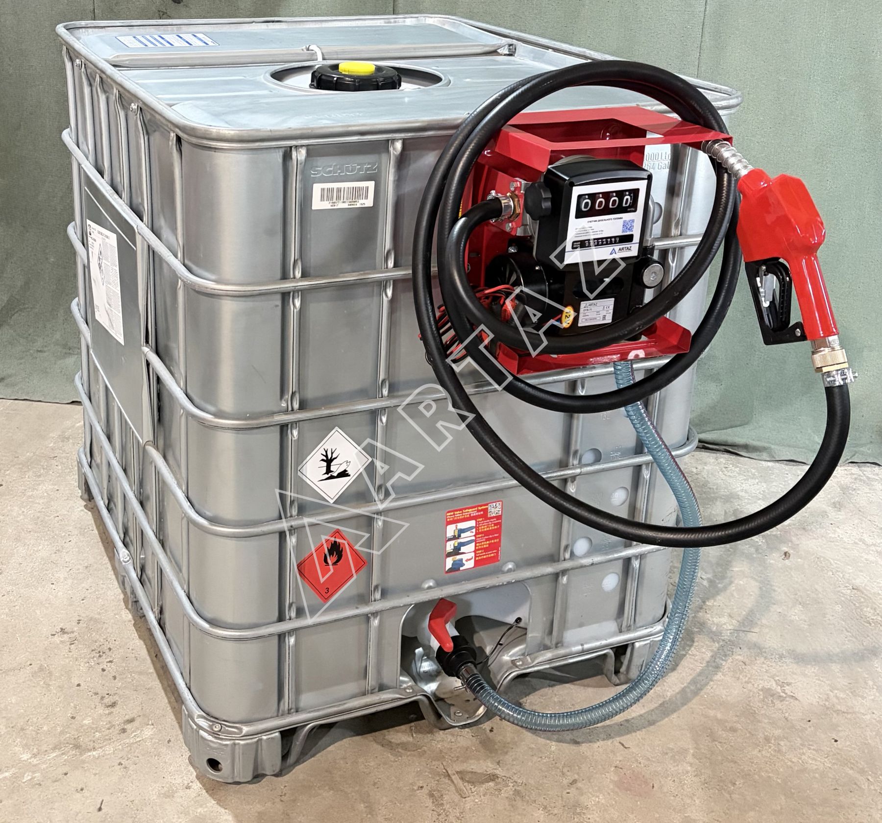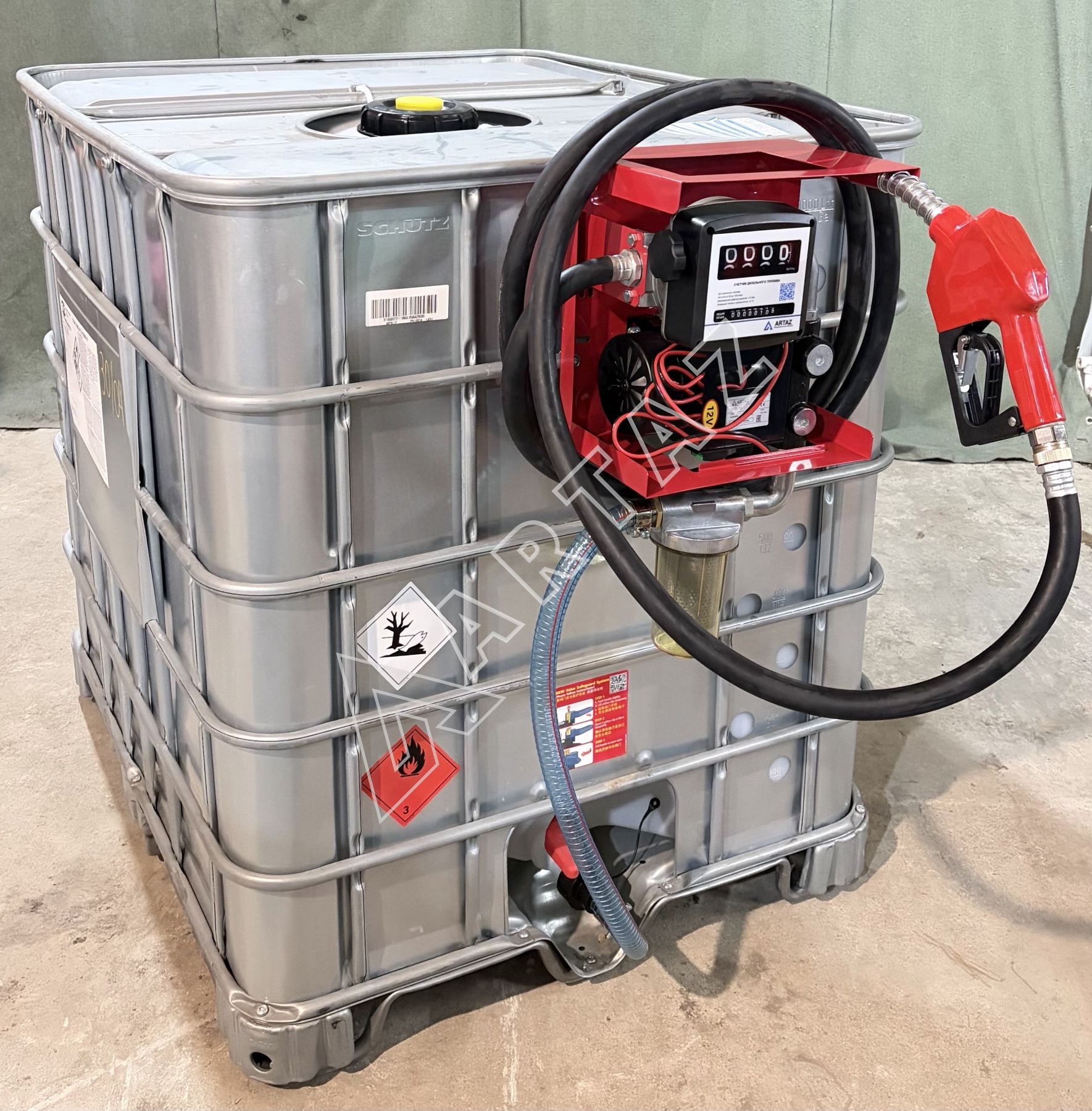 Комплектация мобильной мини АЗС из еврокуба в металле на 1000 литров 12 вольт для дизельного топлива Armor
