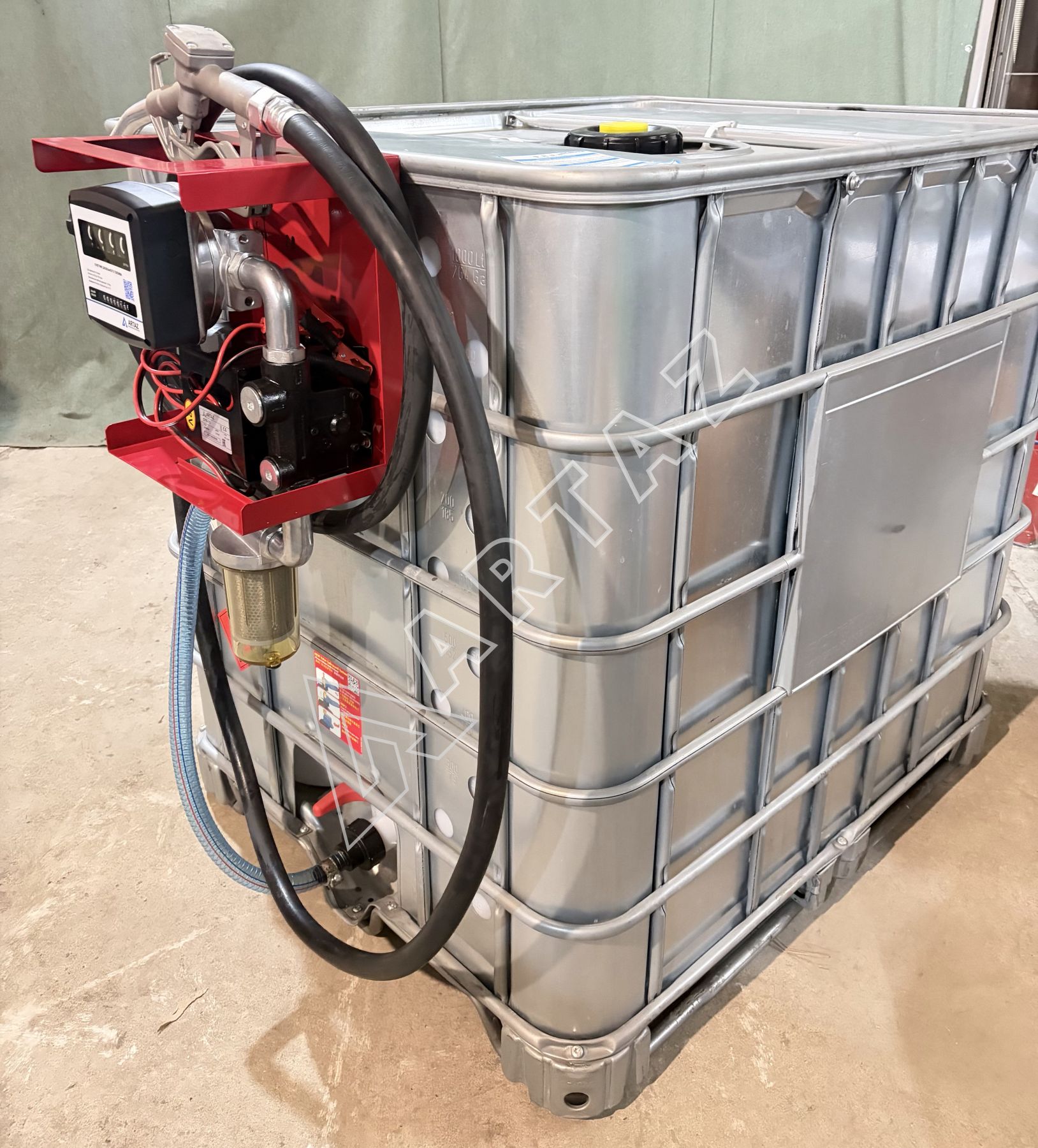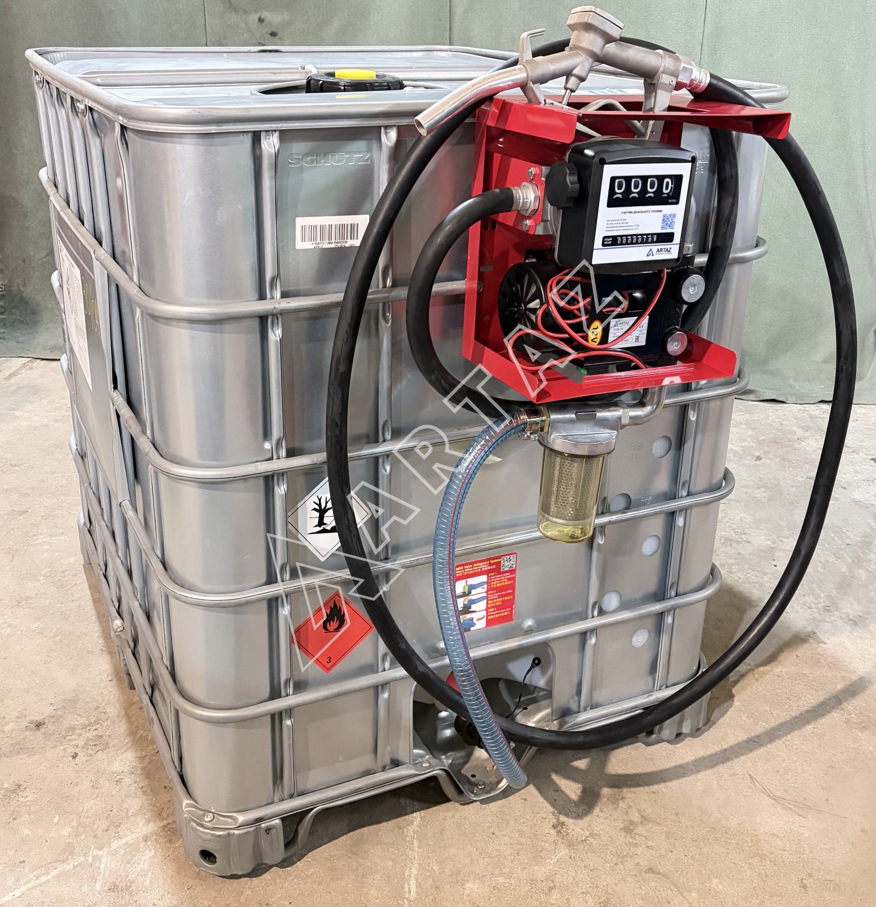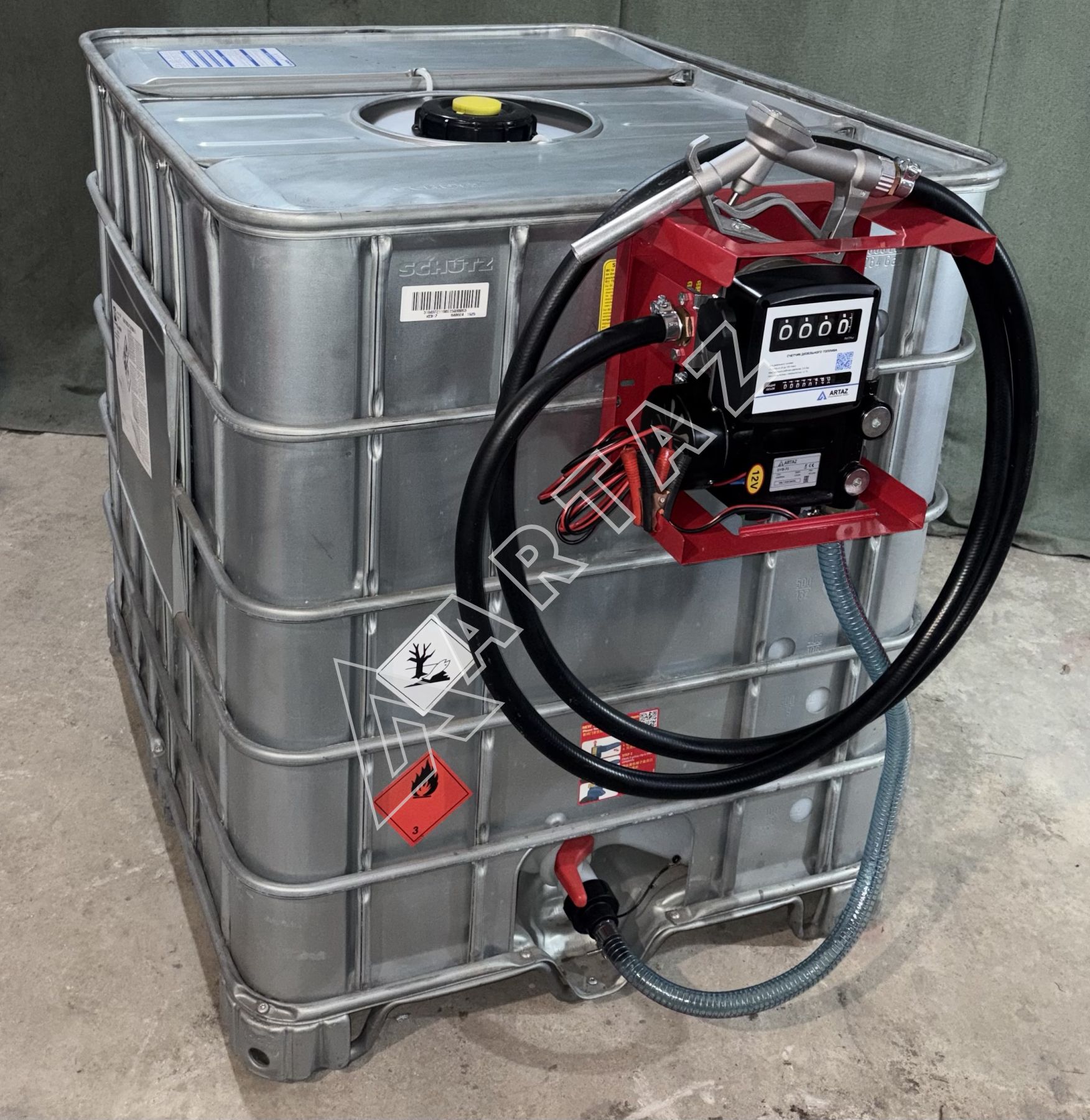 Комплектация мобильной мини АЗС из еврокуба в металле на 1000 литров 12 вольт для дизельного топлива Armor