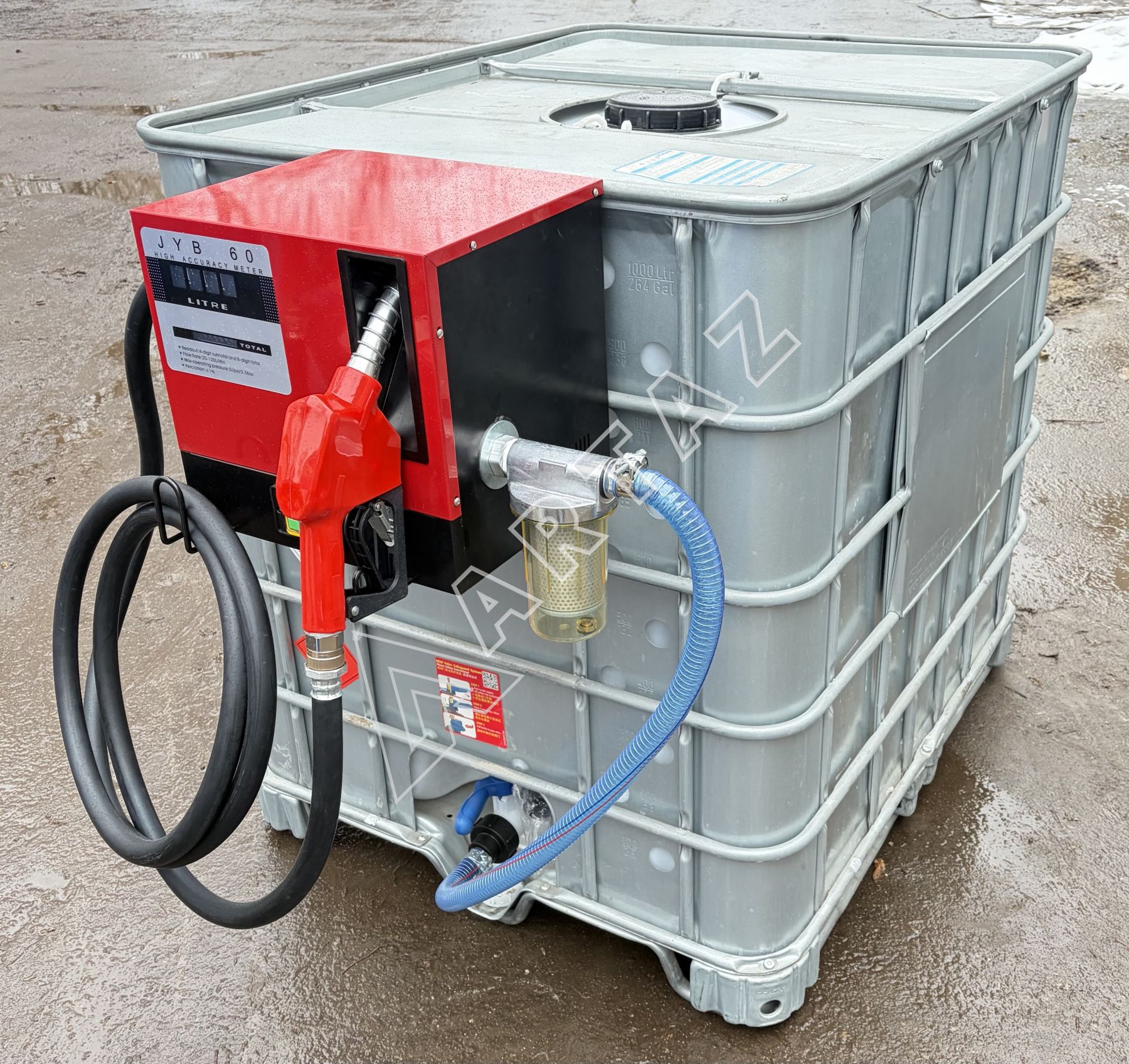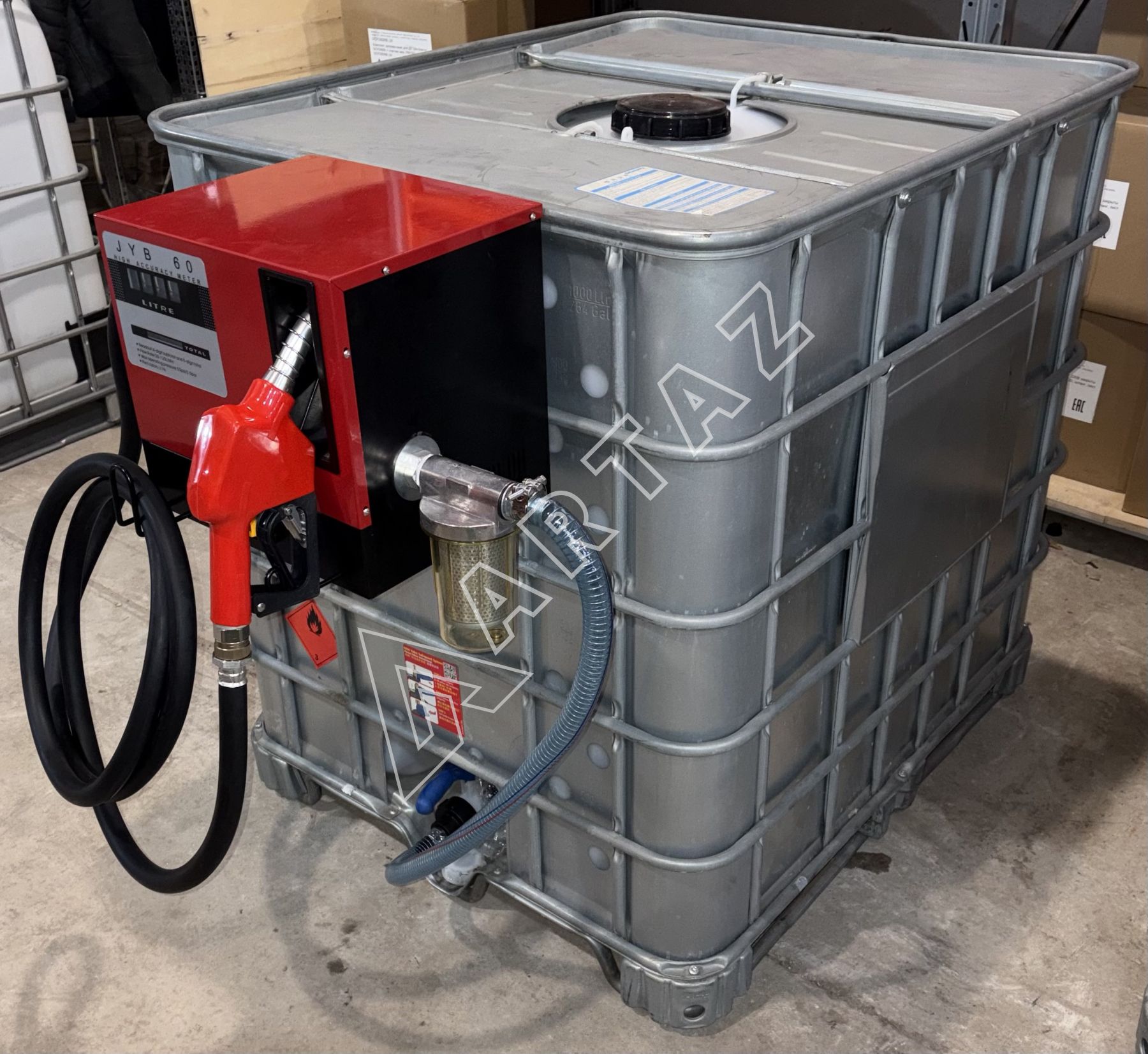 Топливный модуль для ДТ еврокуб в металле 1000л. бу, Колонка CUBE насос 60 л/м 220V со счётчиком, шланг, пистолет