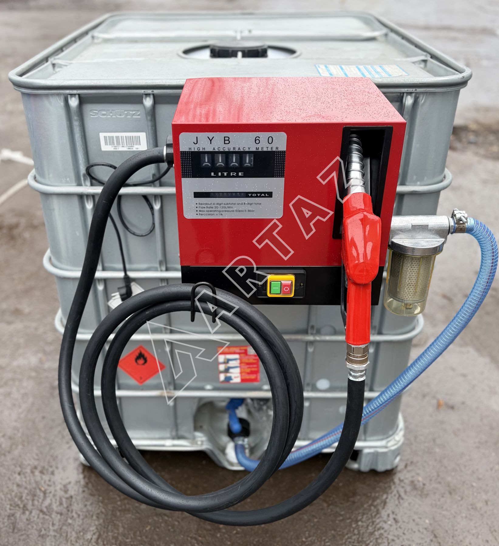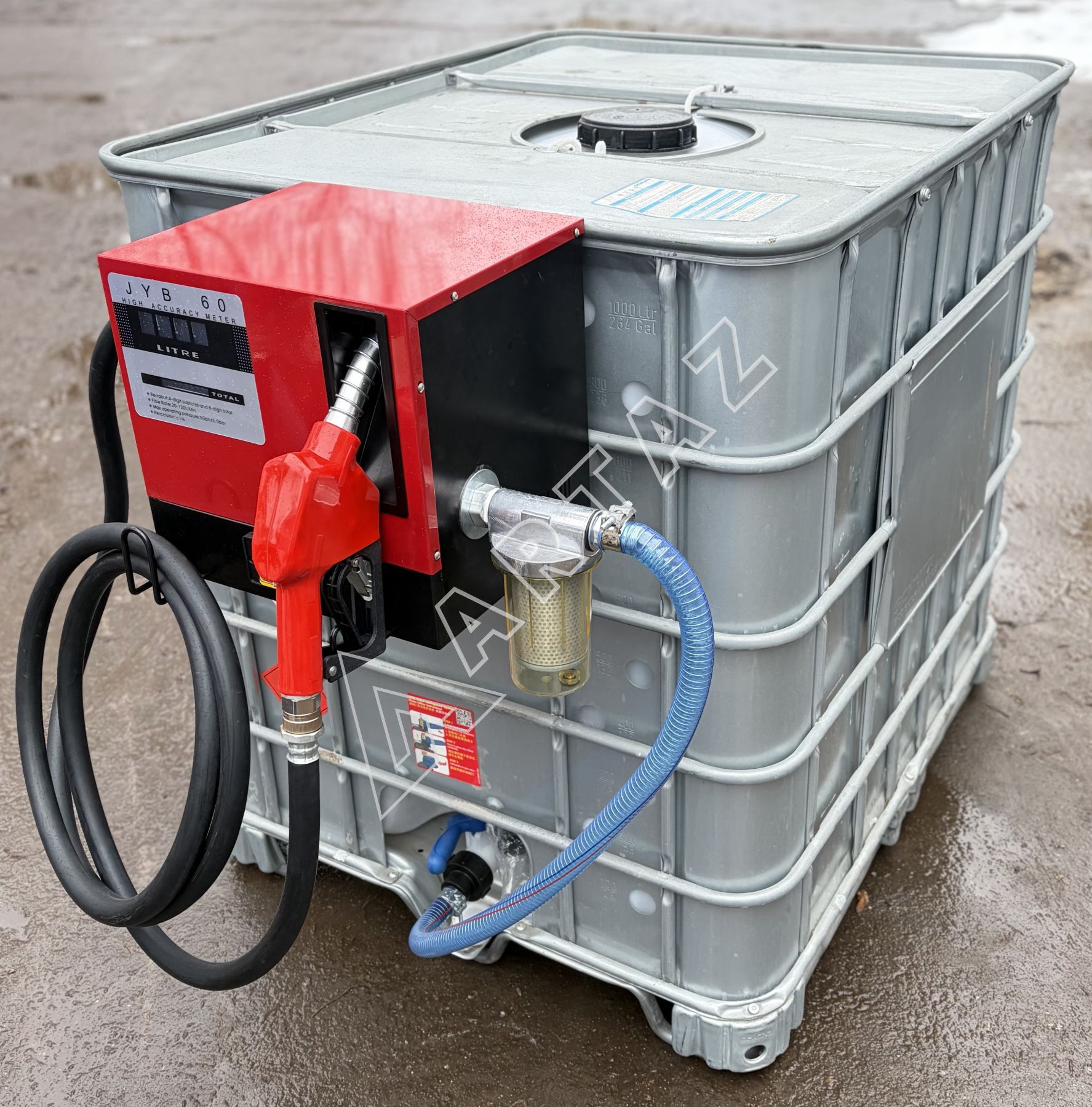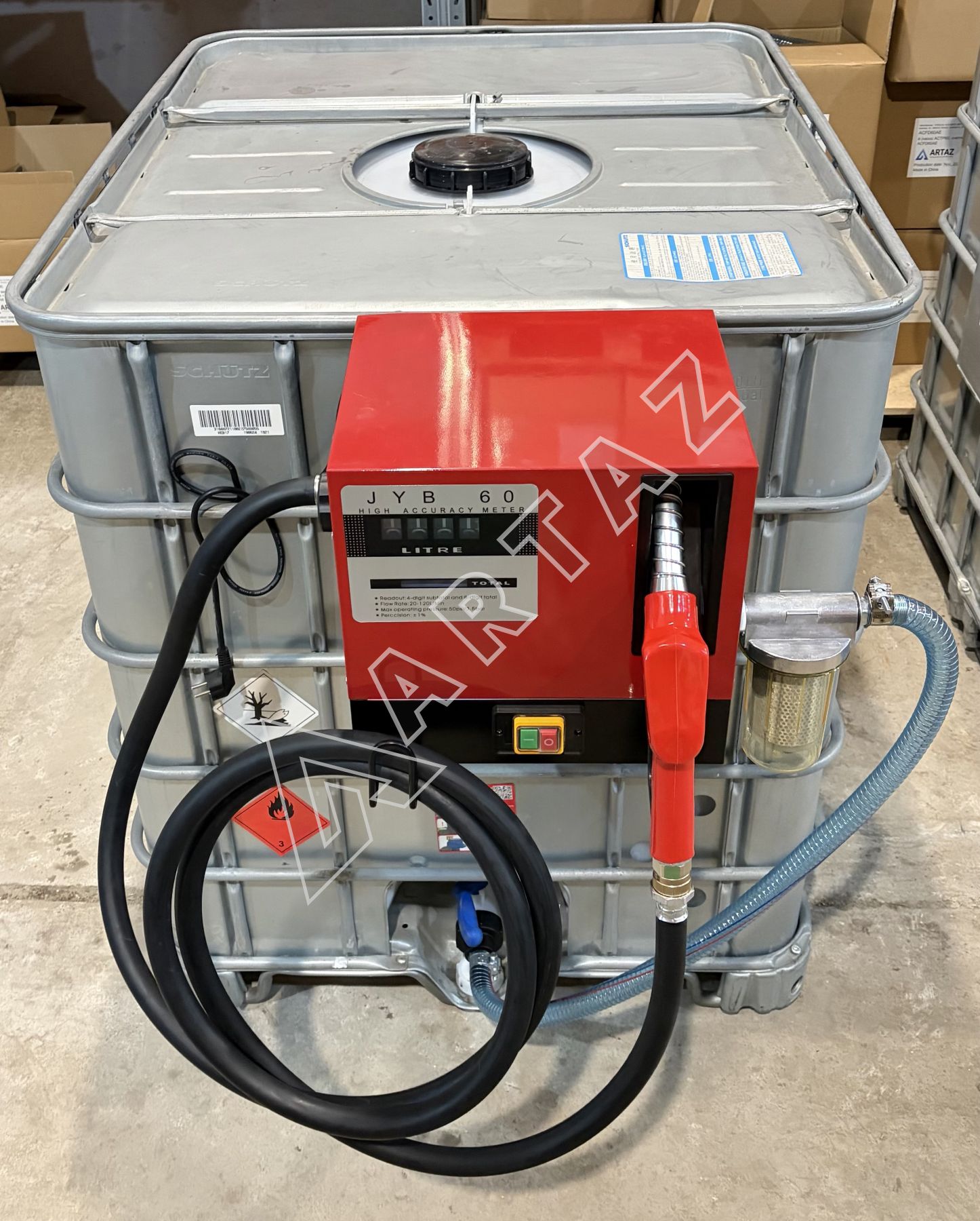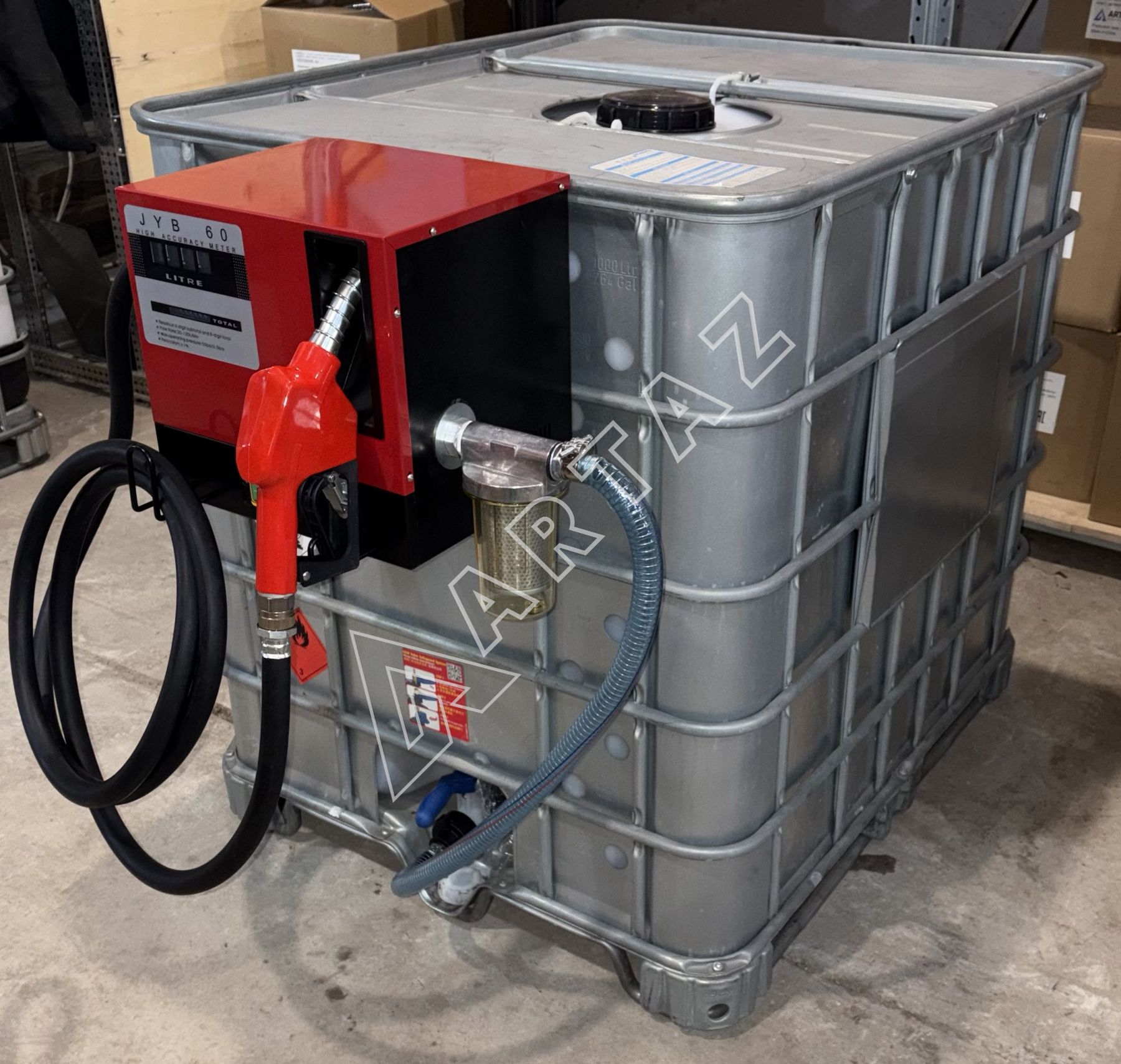 Комплектация Мини АЗС из еврокуба в металле на 1000 литров c топливораздаточной колонкой Artaz CUBE 220 вольт для дизельного топлива Armor