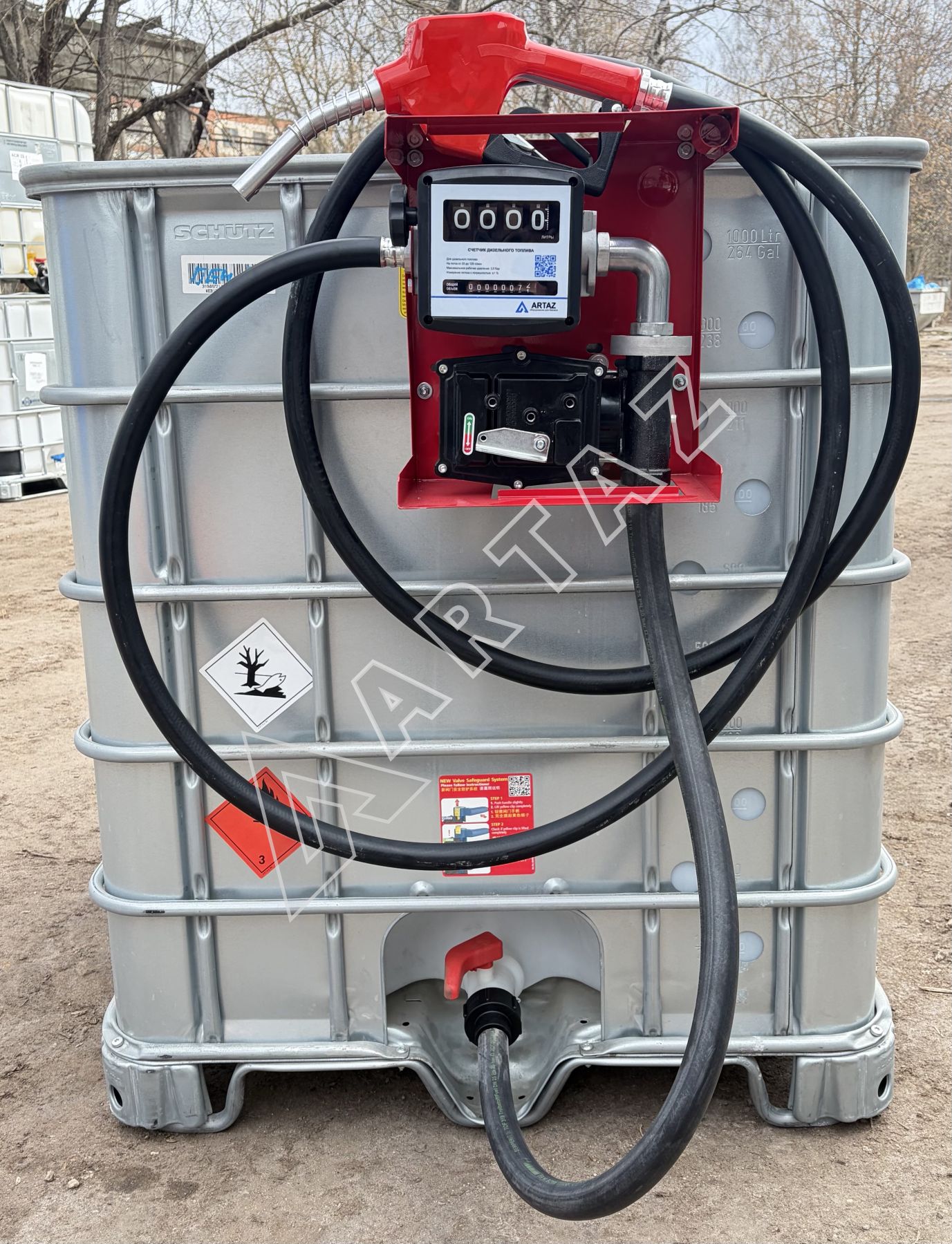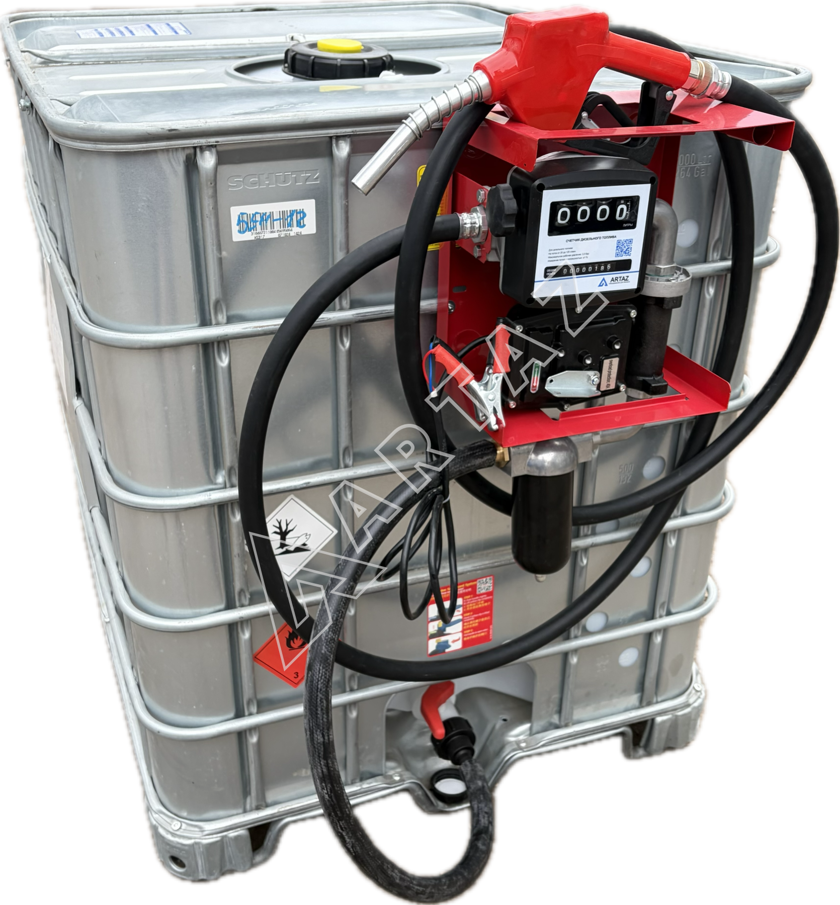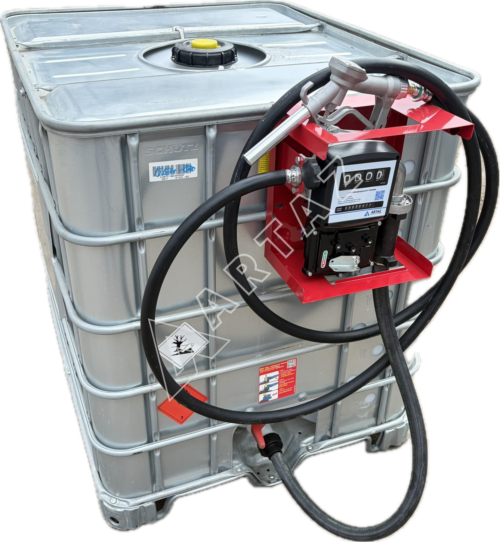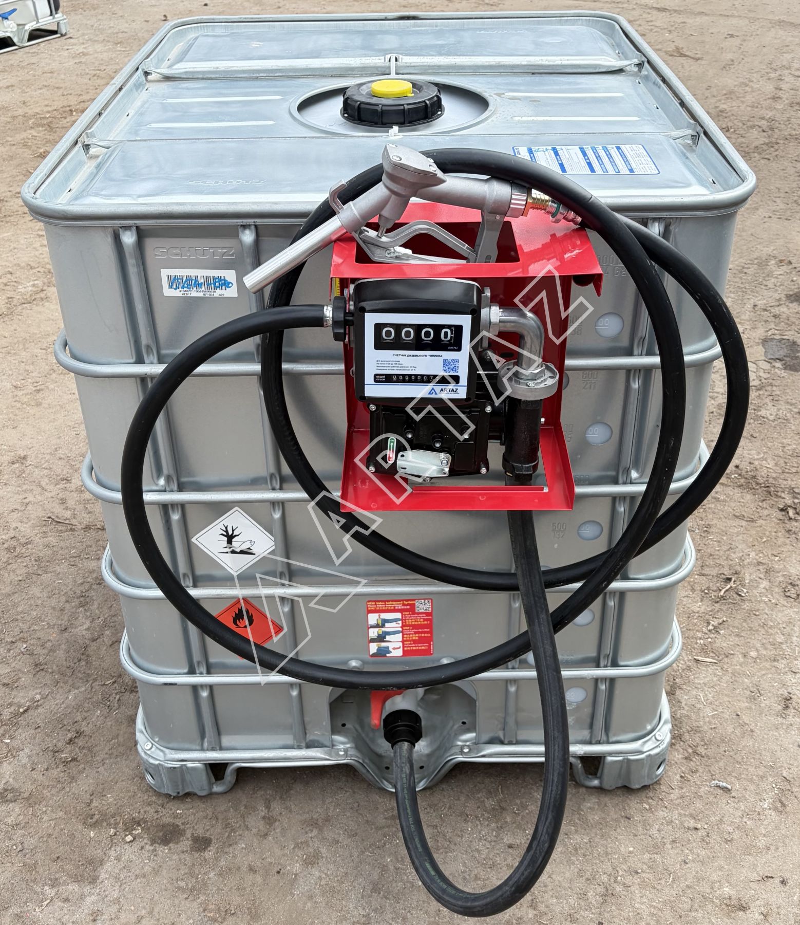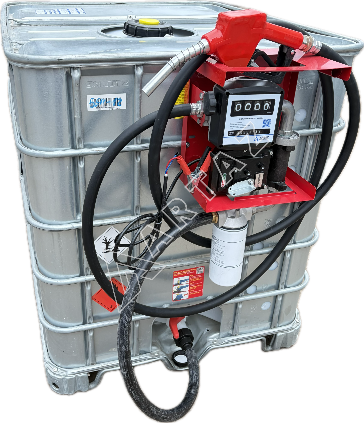 Топливный модуль для бензина Armor EX еврокуб 1000 л бу, насос 50 л/м 220в с мех. счётчиком, шланг, пистолет