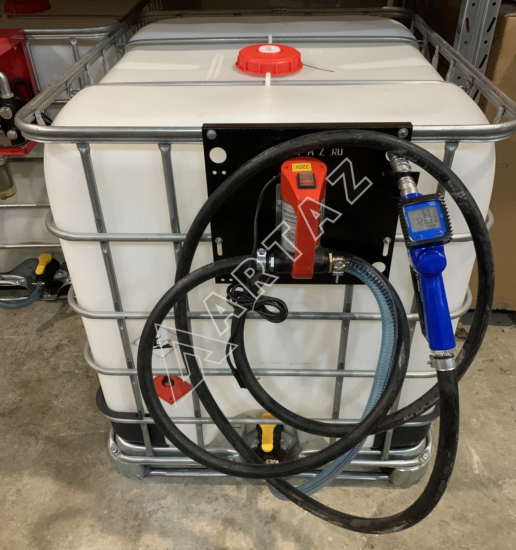 Мини АЗС из еврокуба для ДТ 12V 40 л/м бытовая со счетчиком в пистолете