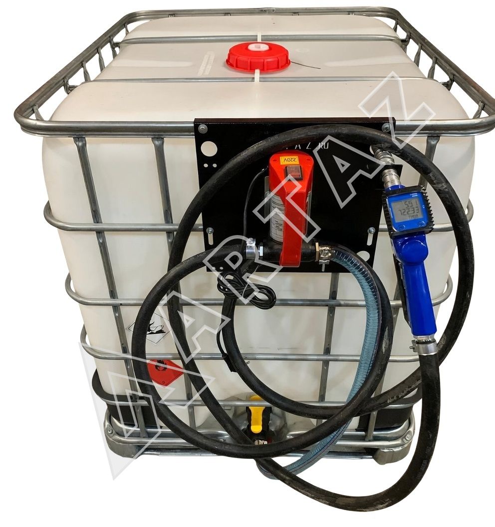 Мини АЗС из еврокуба для ДТ 220V 40 л/м бытовая со счетчиком в пистолете