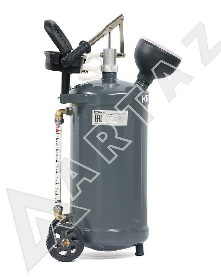 Нагнетатель масла ручной 30 л, KraftWell KRW1917 1-5 бар, с подающим шлангом на 4 м, на колесах