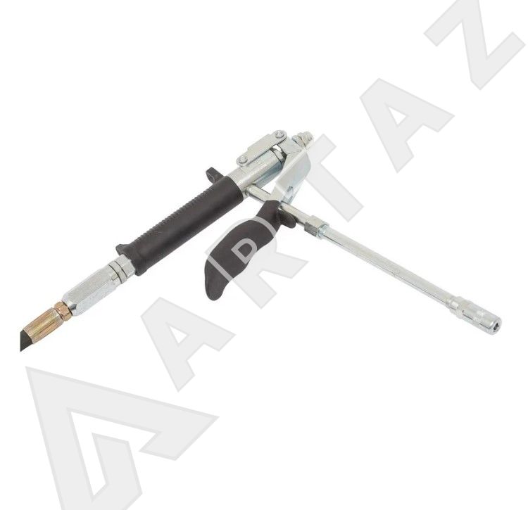 Выходной шланг обладает хорошей гибкостью, что облегчает закачку смазок в различные агрегаты.