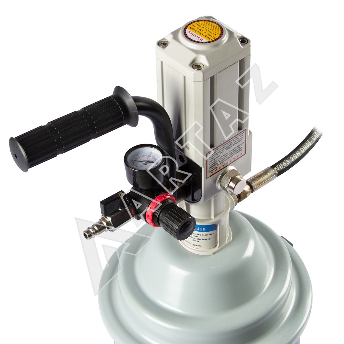 Нагнетатель смазки для бочек на 13 л, Wiederkraft WDK-89813 6-8 бар, пневматический, с максимальным давлением смазки 30 МПа