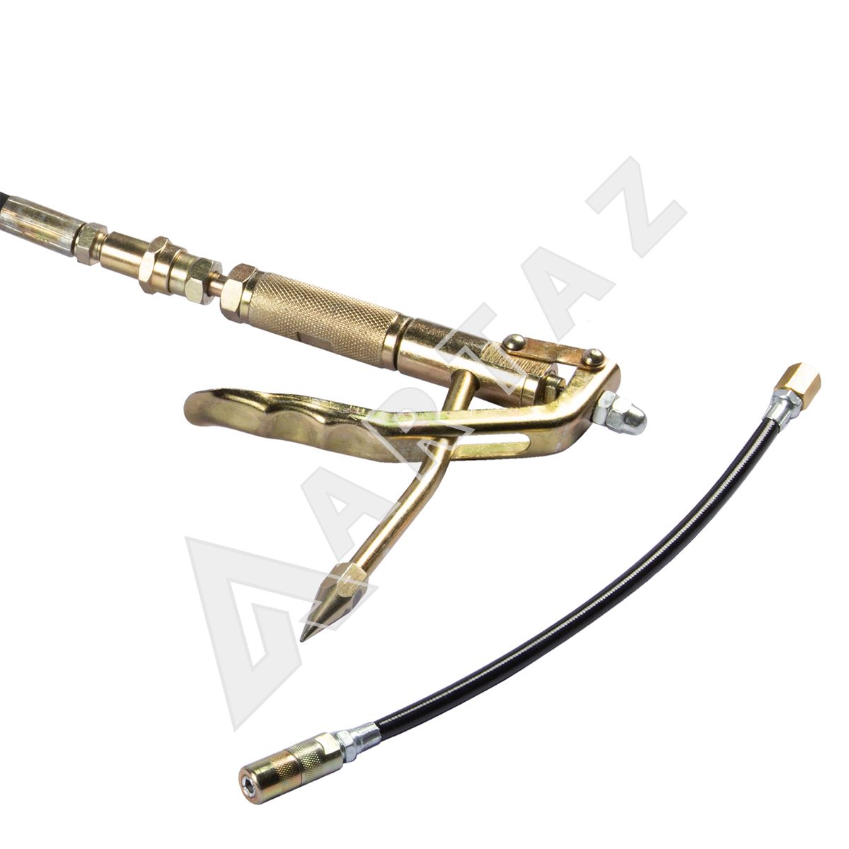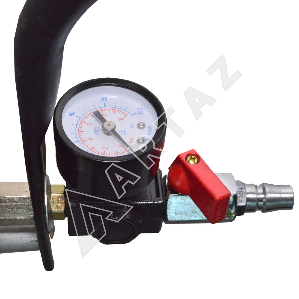Мобильный нагнетатель WDK-89813 предназначен для нанесения масел и смазок на трущиеся детали автомобилей, тракторов и других транспортных средств. Он поддерживает использование как пластичных и консистентных смазочных материалов на литиевой или нефтяной основе, так и жидких масел и смазок. Все компоненты устройства изготовлены из материалов, стойких к агрессивным химическим веществам. Мобильная конструкция и компактный вес позволяют легко обслуживать технику как в зоне ремонта, так и на местах стоянки. Максимальное давление смазки составляет 30 МПа. Тип привода устройства: пневматический. Рабочее давление сжатого воздуха: 6-8 бар. Объем бака: 13 кг. Длина шланга: 2500 мм.