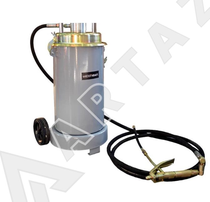 Нагнетатель смазки для бочек на 20 л, Wiederkraft WDK-89530 5-7 бар, пневматический, с производительностью 0.75 л/мин, на колесах