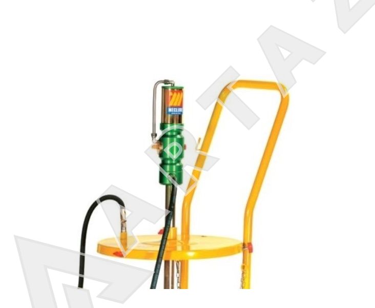 Комплект пневматического оборудования Meclube 013-1116-000 (с коэффициентом сжатия 60:1) предназначен для перемещения и распределения смазки из бочек весом 50-60 кг. Насос работает от сжатого воздуха, подаваемого компрессором, с потреблением 130 литров воздуха в минуту и обеспечивает производительность смазки до 1600 грамм в минуту. Рабочее давление регулируется в диапазоне от 2,5 до 8 бар. Насос со стержнем длиной 750 мм, подходящий для различных форм емкостей. Двухколесная тележка с фиксирующим ремнем для удобного перемещения бочки и установленного на ней оборудования. Крышка диаметром 420 мм для надежного крепления насоса на бочке и защиты смазки при транспортировке. Мембрана диаметром 400 мм, позволяющая использовать смазку полностью, не оставляя остатка на стенках емкости. Гибкий шланг длиной 3 метра для перекачки смазки на любое расстояние и в любом направлении. Пистолет с поворотной муфтой, предотвращающий перегибы шланга, и насадка с четырьмя лепестками для герметичного соединения с точками смазки. Ручка тележки с крючком для пистолета делает комплект мобильным и легким в перемещении.