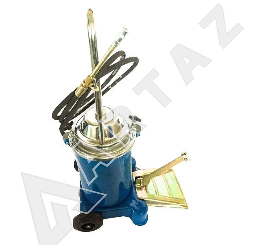 Оборудование функционирует на основе механического сжатия. Ножной насос создаёт высокое давление, сжимая густую смазку и способствуя её распылению. Это оборудование отличается высокой надёжностью, обеспечивает значительное рабочее давление, легко в использовании и обладает отличной мобильностью. Оно предназначено для смазки веществ с высокой вязкостью и активно применяется в автомобильной промышленности для обслуживания автомобилей, тракторов и других транспортных средств.