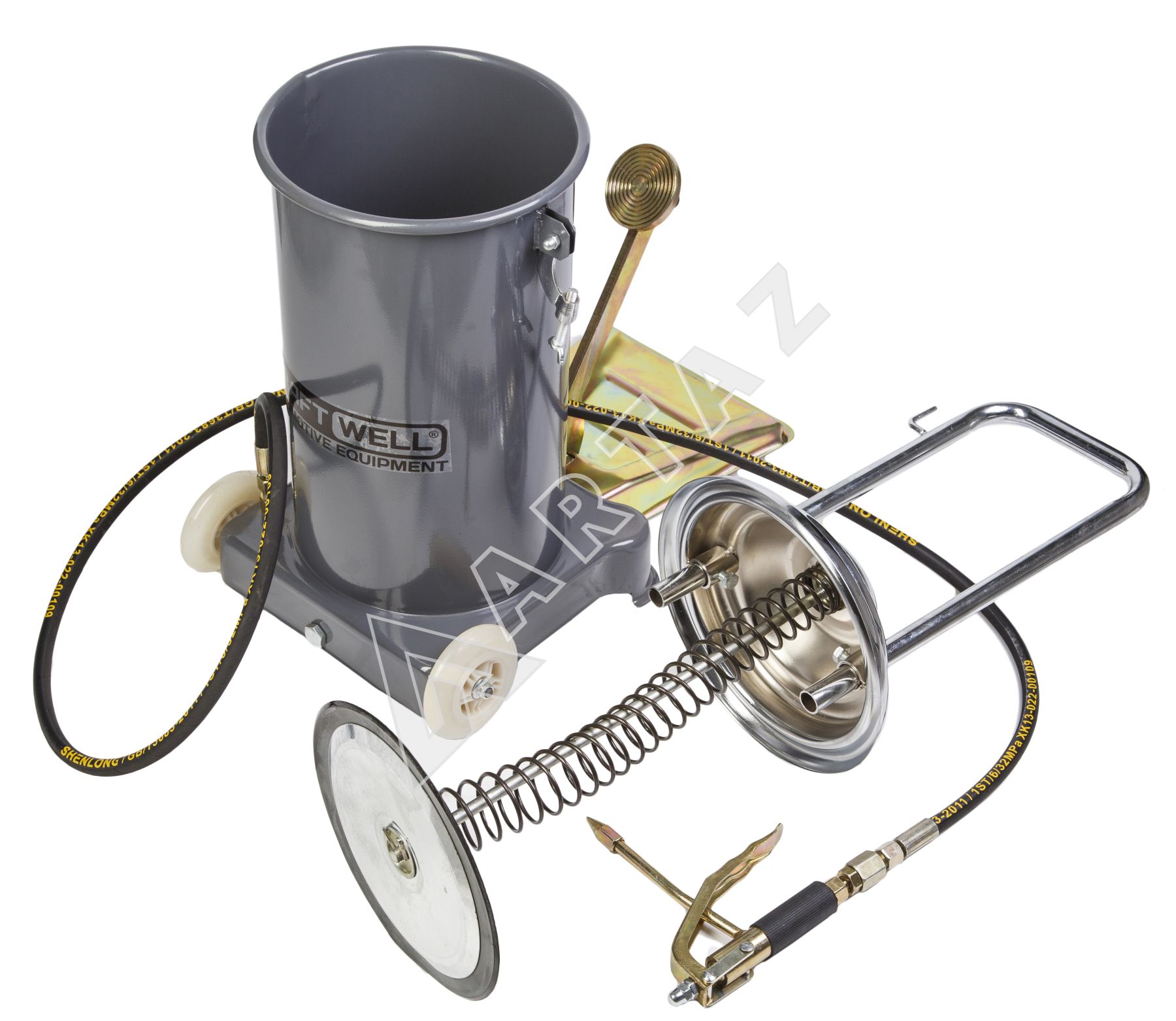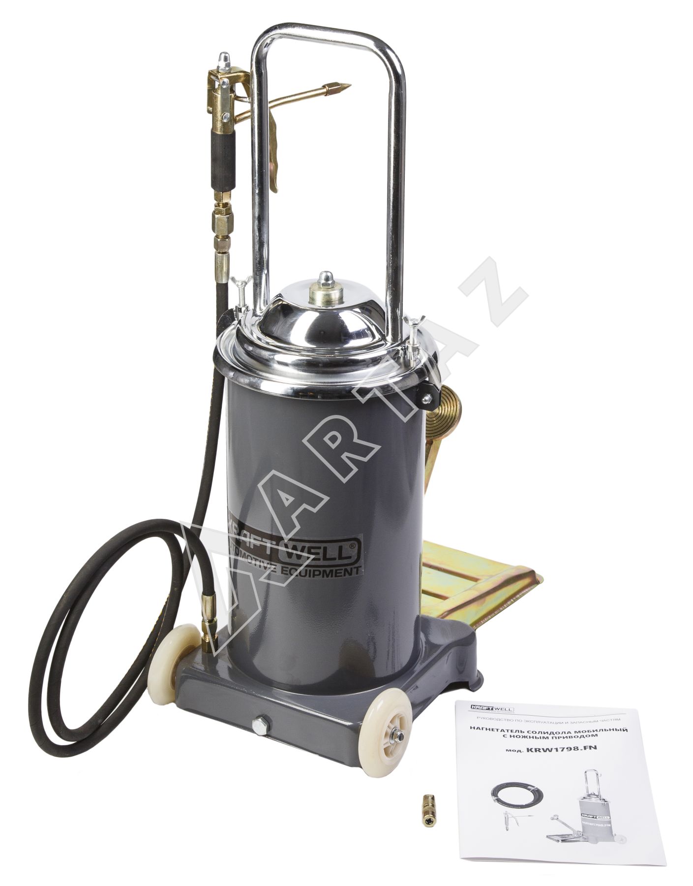 Нагнетатель смазки ножной для бочек на 12 л, Kraftwell KRW1798.FN 1-8 бар, механический, с подающим шлангом на 2.5 м, на колесах