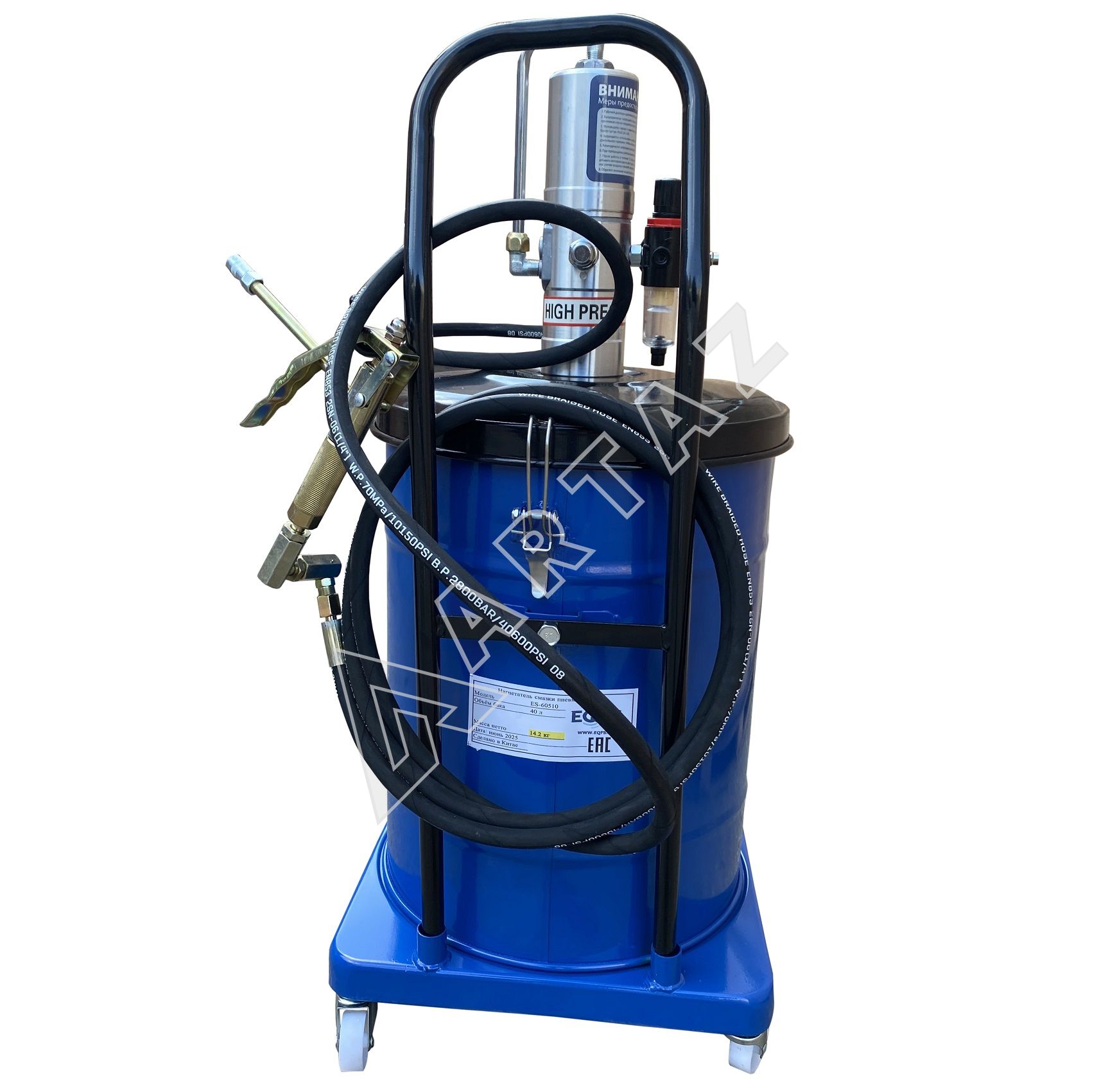 ES-60510 Пневматический нагнетатель смазки 40 л с мобильной установкой и высоким давлением 300 бар